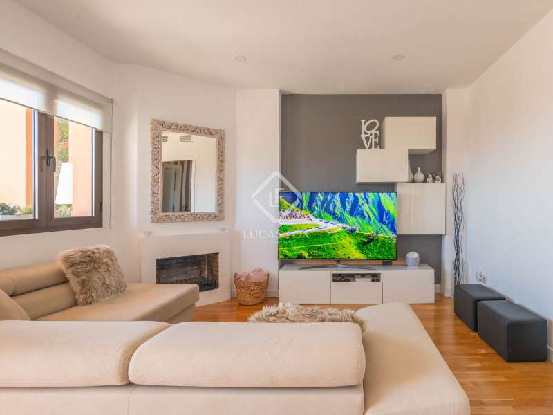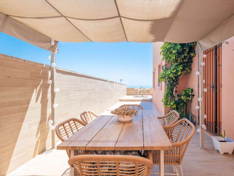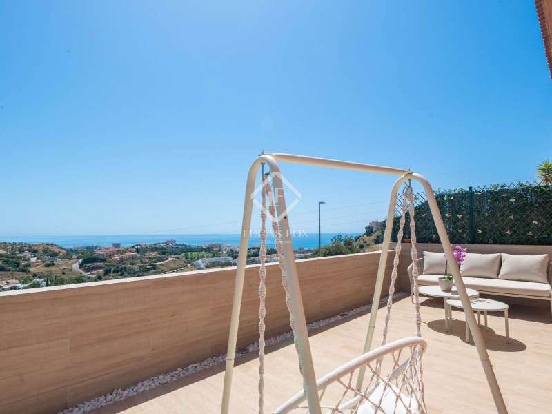 Lucas Fox presents this magnificent corner townhouse in one of the most exclusive areas of Benalmádena, in a gated development with a communal pool, paddle tennis court, and manicured gardens. Its elevated position offers unobstructed sea views. The property is very spacious and offers great privacy. It stands out for its contemporary design, excellent quality, and impeccable state of repair. Thanks to its southeast orientation, all interior spaces receive abundant natural light for much of the day. It is spread over three floors. On the main floor , the entrance hall leads to a guest toilet and a fully equipped, functional designer kitchen. The spacious and bright living room is divided into two distinct areas: the living area and the dining room. It also connects directly to a spectacular terrace that borders much of the property. This exterior space is perfectly equipped, with a relaxation area, an exterior dining room , and a barbecue area, ideal for enjoying the morning sun in winter or pleasant evenings in summer. The middle floor houses two double bedrooms and a full bathroom . Each room has its own terrace: one facing east, and the other with a large west-facing terrace, offering multiple expansion possibilities, from integrating the space into the bedroom to creating a third room on this floor. On the upper floor is the main bedroom, with a private bathroom and a magnificent east-facing terrace. From here, you have privileged views of the sea, making this corner ideal for relaxing or reading outdoors. The property is completed with two large adjoining parking spaces, equipped with an electric vehicle charging station, and a generously sized storage room . This property represents an exceptional opportunity for those seeking a property with character, elegance, and all the necessary elements to enjoy a comfortable and exclusive life by the sea. The property stands out for its tranquil setting, the privacy of its corner location, its generous outdoor spaces, and its panoramic views of the Mediterranean.
