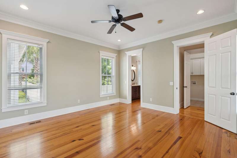 Welcome to 41 Jane Jacobs, located in I'On, one of Charleston's most desirable neighborhoods. Upon entering this charming home, you are greeted by the cozy family room, complete with a built-in surround sound system and fireplace. Beautiful pine wood flooring throughout. The kitchen features custom-built glass-paned cabinets with built-in lighting, a central island for extra countertop space, and stainless-steel JennAir appliances. The primary bedroom is conveniently located on the main floor, offering dual walk-in closets and a private en-suite bathroom with a jacuzzi tub and a walk-in shower. There is an additional bedroom on the first floor that can be used as a guest room, office, or study. Upstairs features two bedrooms, both with extra-large closets with ample storage space. One ofthe upstairs bedrooms features a hidden door in the closet that leads to an unfinished space over the primary bedroom. The detached one-car garage includes a spacious unfinished room above that can easily be finished and turned into a charming carriage house or a fantastic guest suite. Property has approval for 2 parking spaces in front of house on the street.