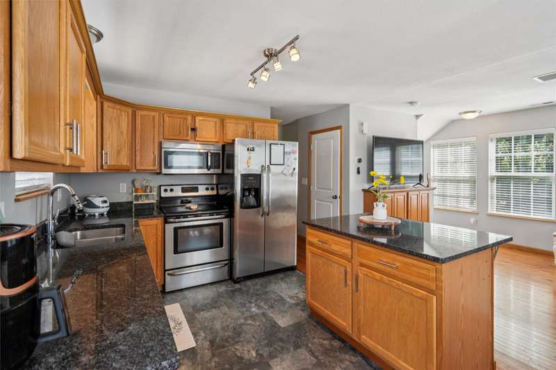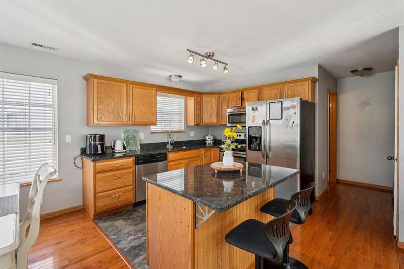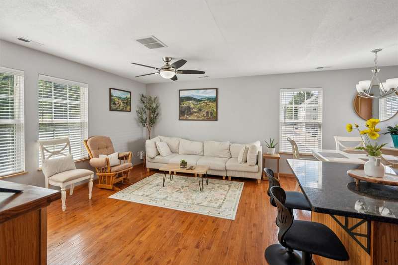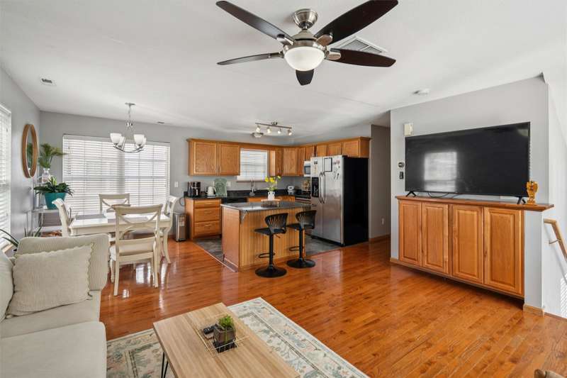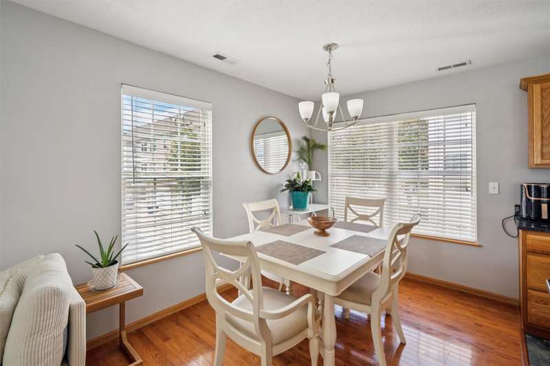 Great location & All the Upgrades: White wood-faux blinds throughout, built-in cabinet in living room, granite counters in kitchen & both bathrooms, oak floors, cabinets in laundry room, custom closets in both bedrooms, tiled floors in both bathrooms and all stainless-steel appliances. This Beautiful 2 BR, 2 BA two story townhome is streaming with southern & western light and backs to greenspace! This home has a spacious living area which is open to the kitchen & dining area and has upgraded engineered hardwood flooring. The kitchen has upgrades such as thick granite counters, stainless-steel appliances and a walk-in pantry! The convenient full bath has been remodeled and completes the main floor living. Upstairs has 2 spacious bedrooms with custom closets, a remodeled full bathroom and a laundry room w/washer & dryer included! Other features are a 2-car attached garage, a deck facing greenspace, 2 separate entrances, one is an entrance near the garage and the other is at the deck. There is ample guest parking near this home. All appliances are included; this home is move in ready!