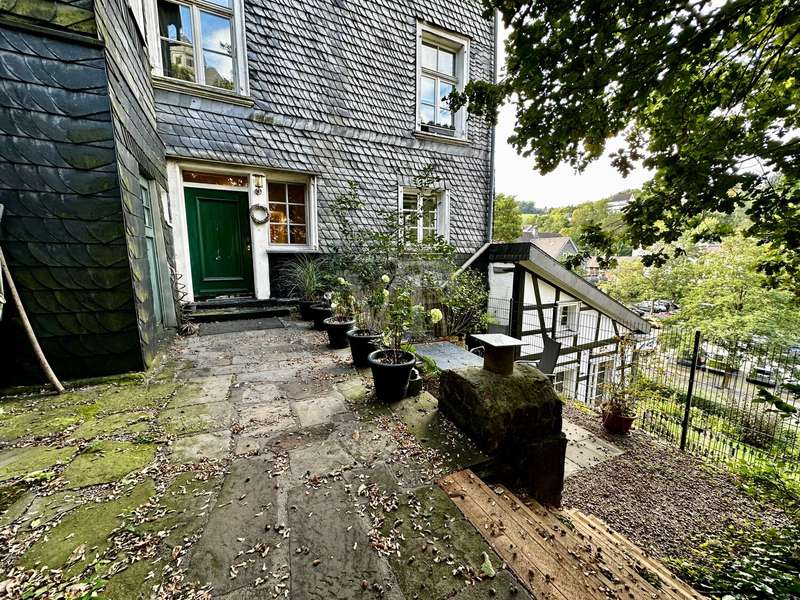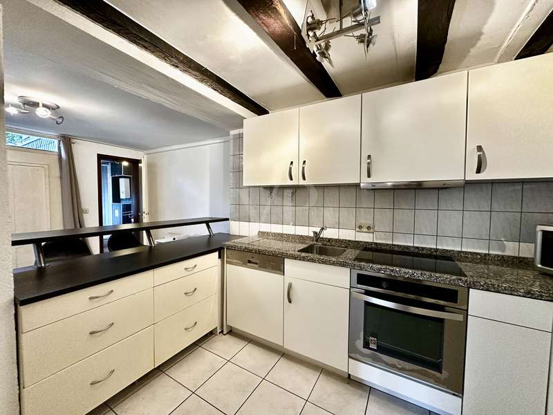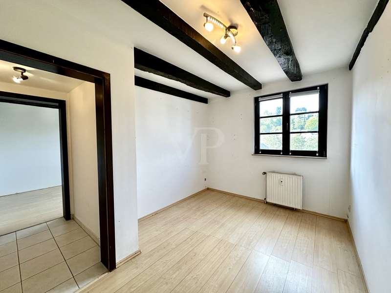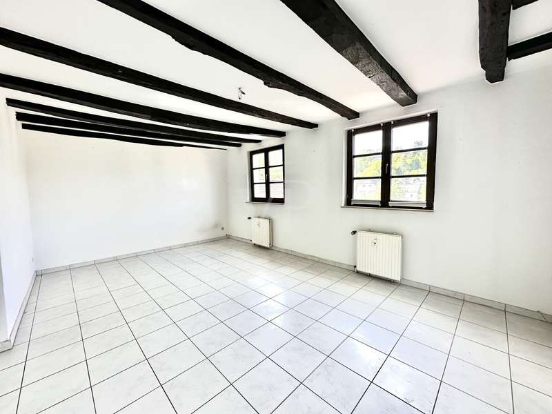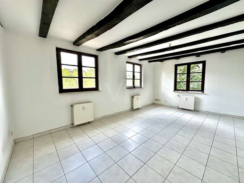 This charming 3-room first floor apartment with approx. 60 m² of living space combines the unmistakable character of a listed old building with modern living quality. The private entrance ensures a pleasantly separate living experience and makes this home a special retreat for anyone who appreciates individuality and style. As soon as you enter, you are greeted by a friendly entrance area that flows harmoniously into the open kitchen. Here you will find ideal conditions for modern kitchen appliances as well as space for a cozy seating area - perfect for your first coffee in the morning or a relaxed breakfast. To the left of the entrance is a practical guest WC, while the light-flooded living room opens up to the right, creating a bright and inviting ambience with its generous windows. Along the hallway, you reach a room that can be used flexibly and is ideal as a home office, children's room or guest room, as well as the quiet bedroom, which is accessible via a small passageway. Opposite is the bathroom with shower, and at the end of the hallway a storage room offers welcome storage space. A real highlight is the sheltered terrace, which offers a private outdoor area for relaxing hours outdoors - whether reading, enjoying your morning coffee or socializing with friends. This apartment is ideal for singles, couples or small families who want to combine the special charm of a historic old building with the comfort of modern living.