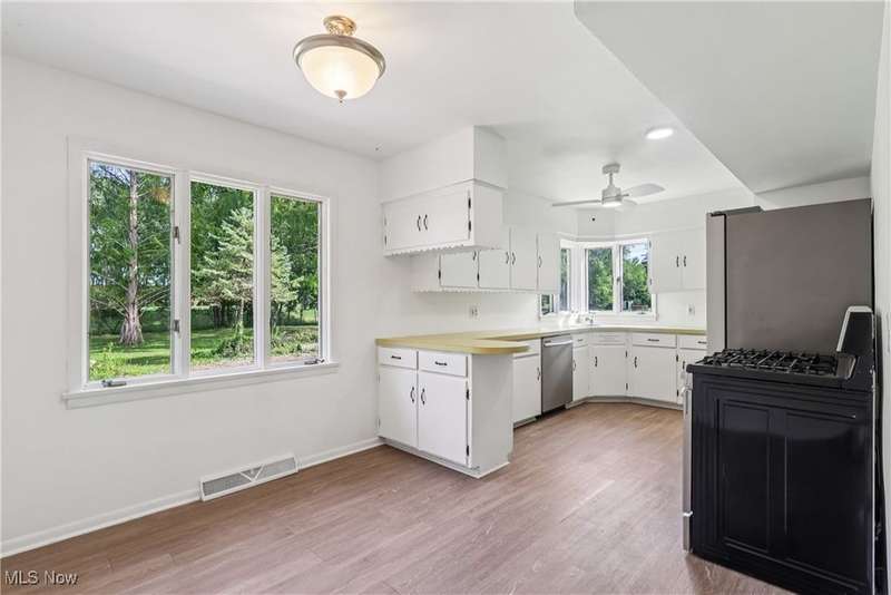 Spacious ranch on two parcels totaling .54 of an acre total lot size. 4 bedrooms plus two full baths on main floor; 3rd full bath in the basement. Three car garage with backyard access via an extra garage door, gives the new homeowner so many options -- car enthusiasts here is your next home! Lots of extra space in the backyard for you to make your own! No HOA here! Living Room is spacious and inviting with the original oak flooring. The recently updated kitchen features new luxury vinyl click flooring, newer stainless appliances too! A spacious dinette as well. Very nice Master Suite with two closets and an attached Master Bath with step in shower, new vanity, counter, flooring and shower! Three additional bedrooms with new carpet (however, there are original hardwood oak floors under the carpet). Enormous basement is ready for your vision -- make a fabulous Rec. Room or amazing Man Cave with plenty of space for your big screen TV! Additional space in the basement could be a great workshop -- you get to decide how to use this space! There is a convenient additional bathroom on the basement level. Newly installed in 2025 are the new furnace and central air. Hot water tank was new in 2024. Roof is approximately 10 to 15 years old.