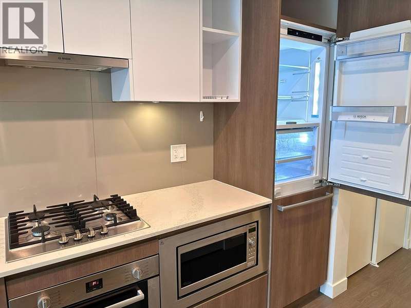 Welcome to 618 Carnarvon, a corner unit, one bedroom home in downtown New Westminster with A/C. West facing with welcoming warm afternoon sun through large windows and a private balcony. The open layout features a sleek kitchen with Bosch appliances, quartz countertops, and soft-close cabinets. Laminate flooring throughout the home, easy to keep clean. Perfect for first time buyers or investors seeking a low-maintenance home in a prime location. Storage locker included. Just a three-minute walk to Columbia and New Westminster SkyTrain stations, with Douglas College, cafés, restaurants, and riverside paths nearby. Residents enjoy access to a fitness centre, rooftop green space, kids' play area, and community lounge. (id:58403)