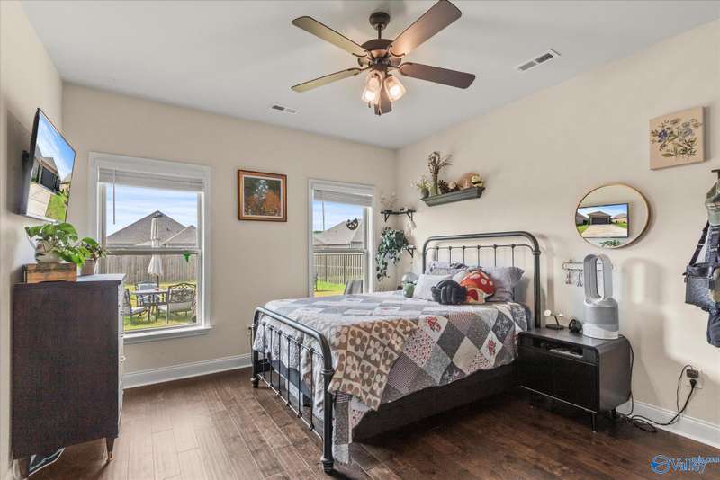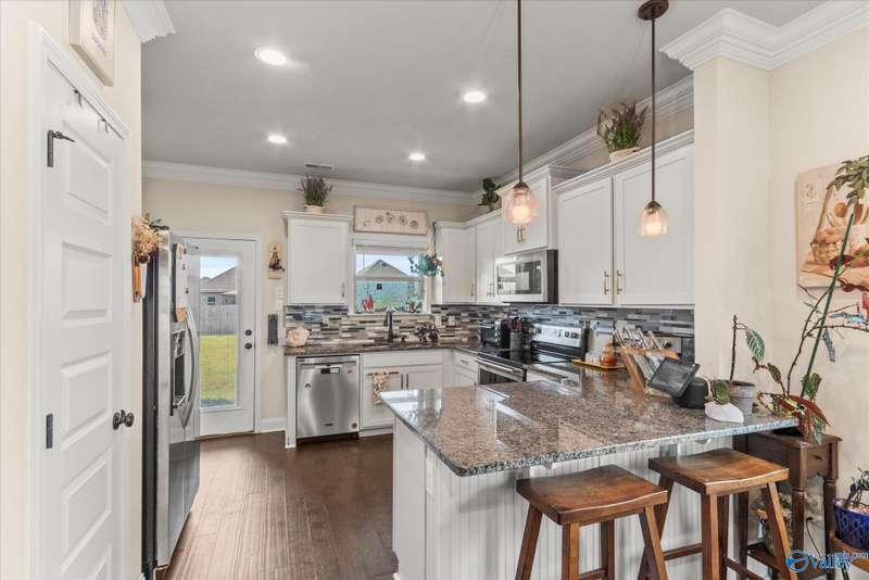PRICE IMPROVEMENT! Step inside this nearly new Caldwell III A in Kennesaw Creek and you’ll notice the upgrades right away. Granite countertops, custom backsplash, undermount sinks, and a pull-down kitchen faucet bring style to the open kitchen. Wood and ceramic tile floors flow throughout, accented by recessed and pendant lighting, ceiling fans, and Venetian bronze fixtures. Outdoors, enjoy stone-edged landscaping, coach lighting, gutters, and stone address block. Energy-efficient features include Low E-3 vinyl windows, electric appliances, and a termite system.