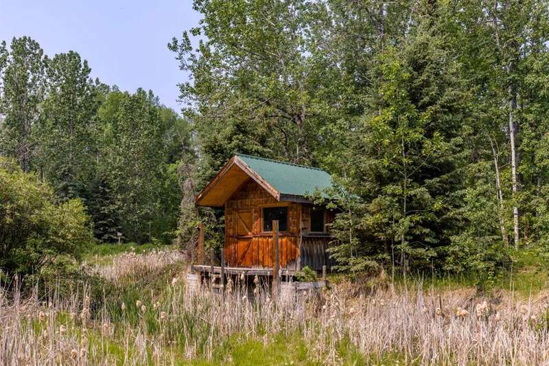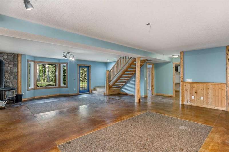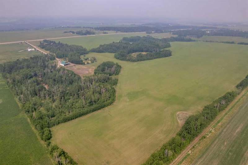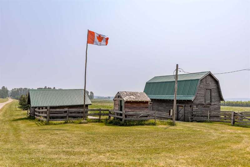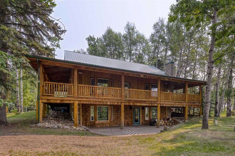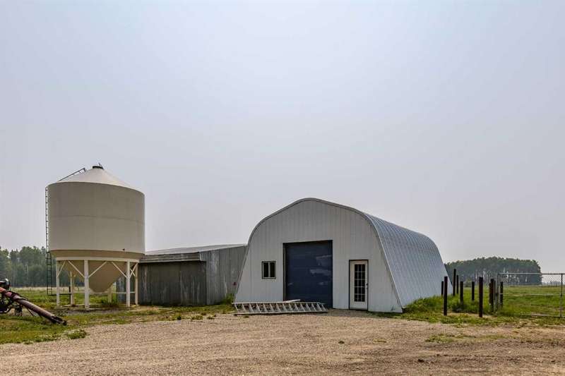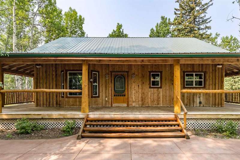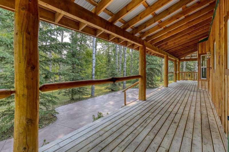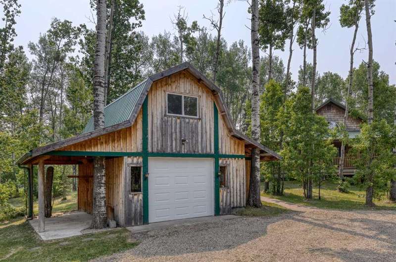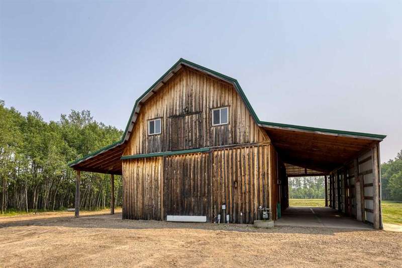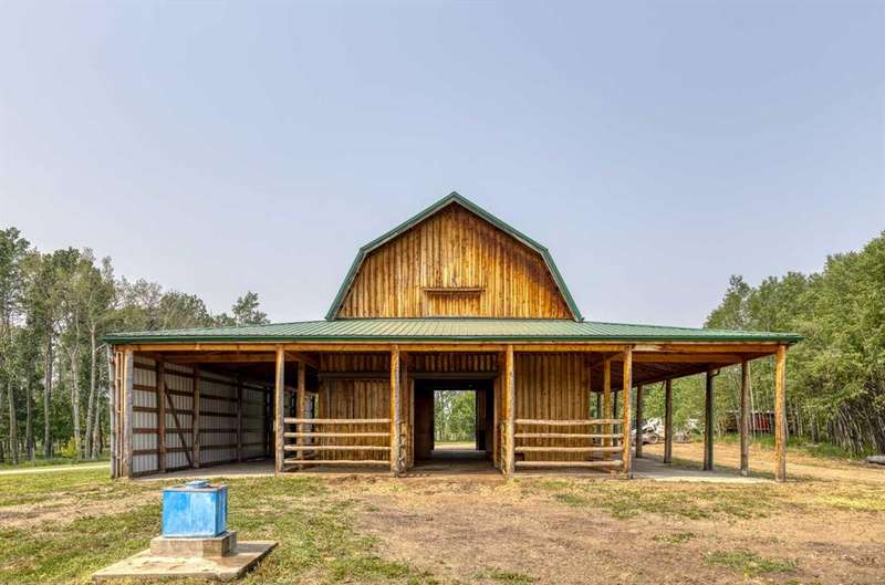 Tucked away in a serene, park-like setting right off Highway 22 and surrounded by mature trees, this unique property offers the perfect blend of rustic charm and practical functionality. The home is a rustic bungalow with a warm Southwestern feel, featuring over 2,278 sq ft of developed living space, a walkout basement, soaring vaulted ceilings, in-floor heat, a cozy wood-burning stove, a gas fireplace, and a gas stove—creating an inviting and comfortable atmosphere throughout. A sprawling 1,350 sq ft wrap-around porch embraces the home, offering the ideal space to relax, entertain, and take in the natural beauty of the surroundings. Set on 152.04 acres, the land is thoughtfully laid out with approximately 90 acres in premium export-grade timothy horse hay, with the balance in natural trees and functional pens. The infrastructure is equally impressive with a versatile 30x50 barn/shop featuring in-floor heat and a full 3-piece bathroom, plus a matching 30x50 upper loft space ideal for storage, studio use, or other creative pursuits. An additional 2,269 sq ft of lean-to space wraps around the barn/shop, providing ample shelter for hay or equipment. There’s also a 28x36 quonset with utilities nearby, awaiting final hookup to power and water for expanded use. Horse lovers and agri-business operators will appreciate the set-up for overnight horse boarding, complete with multiple pens, shelters, and three RV sites equipped with water and power. Two water wells serve the property, ensuring ample supply for home and agricultural needs. A single detached garage with a loft adds to the flexibility and usability of the site. Whether you’re looking to run an agricultural business, or simply enjoy the peace and privacy of country living, this one-of-a-kind property offers extraordinary opportunity and space to make your vision a reality.
