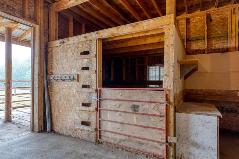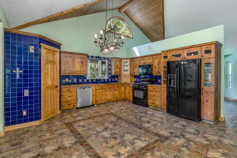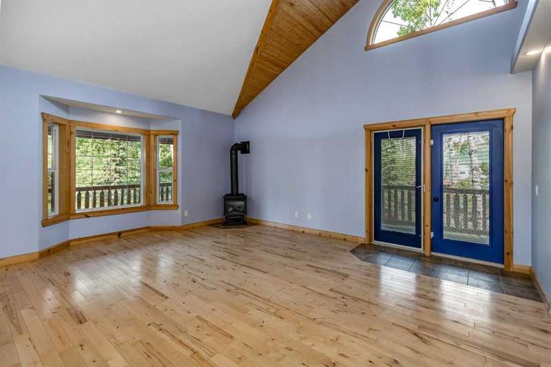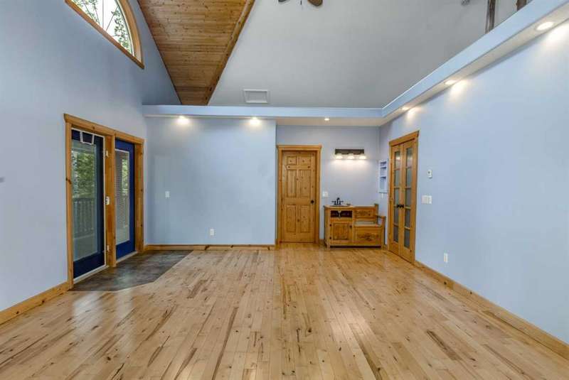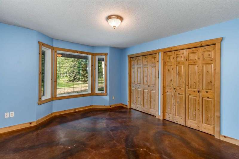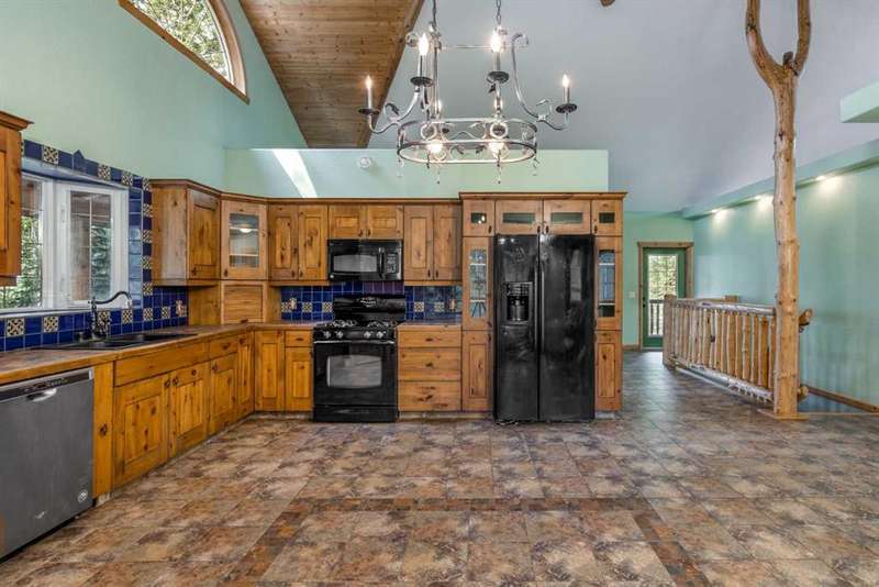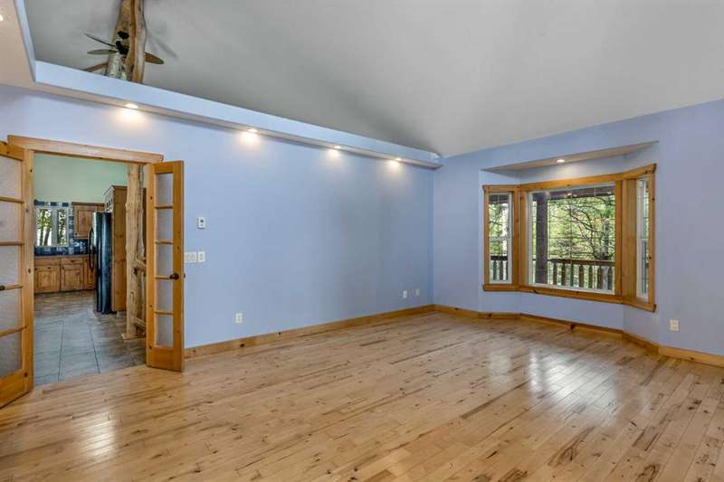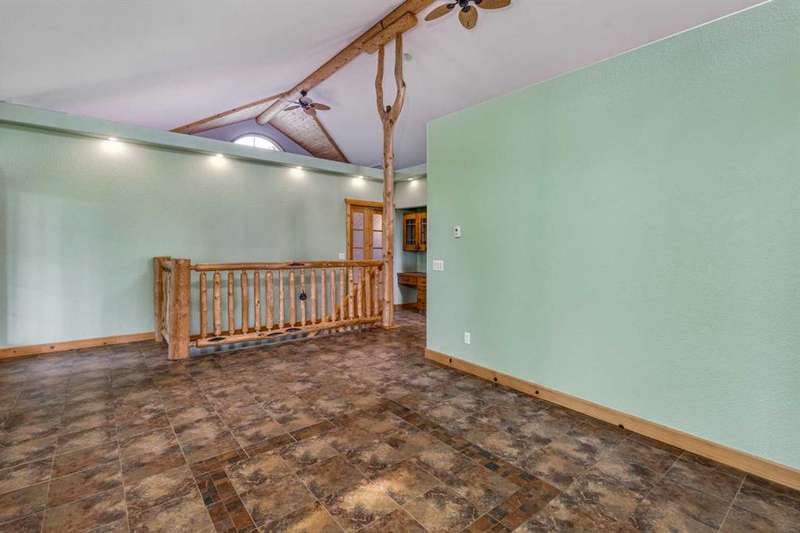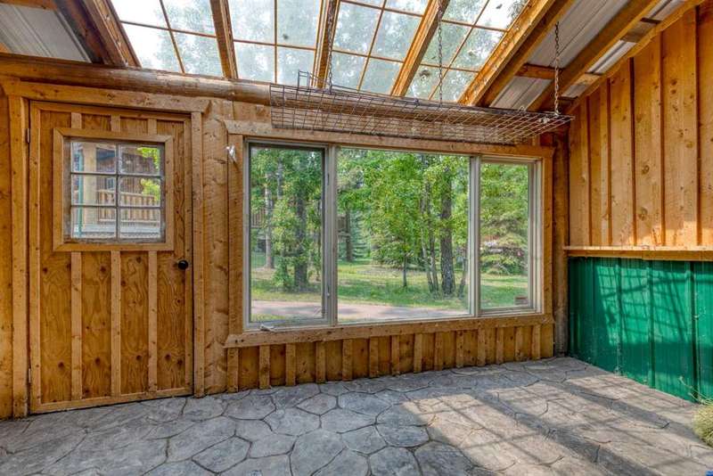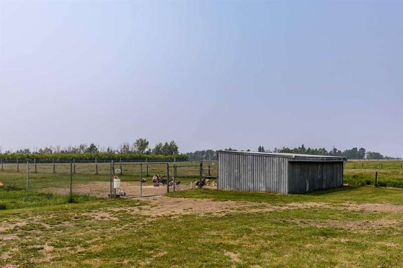 Tucked away in a serene, park-like setting right off Highway 22 and surrounded by mature trees, this unique property offers the perfect blend of rustic charm and practical functionality. The home is a rustic bungalow with a warm Southwestern feel, featuring over 2,278 sq ft of developed living space, a walkout basement, soaring vaulted ceilings, in-floor heat, a cozy wood-burning stove, a gas fireplace, and a gas stove—creating an inviting and comfortable atmosphere throughout. A sprawling 1,350 sq ft wrap-around porch embraces the home, offering the ideal space to relax, entertain, and take in the natural beauty of the surroundings. Set on 152.04 acres, the land is thoughtfully laid out with approximately 90 acres in premium export-grade timothy horse hay, with the balance in natural trees and functional pens. The infrastructure is equally impressive with a versatile 30x50 barn/shop featuring in-floor heat and a full 3-piece bathroom, plus a matching 30x50 upper loft space ideal for storage, studio use, or other creative pursuits. An additional 2,269 sq ft of lean-to space wraps around the barn/shop, providing ample shelter for hay or equipment. There’s also a 28x36 quonset with utilities nearby, awaiting final hookup to power and water for expanded use. Horse lovers and agri-business operators will appreciate the set-up for overnight horse boarding, complete with multiple pens, shelters, and three RV sites equipped with water and power. Two water wells serve the property, ensuring ample supply for home and agricultural needs. A single detached garage with a loft adds to the flexibility and usability of the site. Whether you’re looking to run an agricultural business, or simply enjoy the peace and privacy of country living, this one-of-a-kind property offers extraordinary opportunity and space to make your vision a reality.