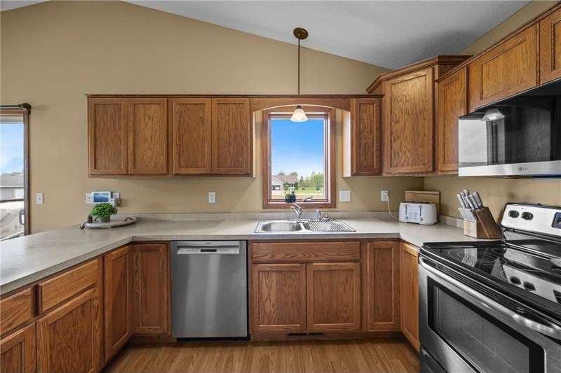 Step into this beautifully maintained three-bedroom, two-bath home, designed with a thoughtful layout and plenty of space for comfortable living. The welcoming front porch is the perfect spot to enjoy morning coffee or the evening sunset. Inside, the home features a well-appointed kitchen with an eat-in kitchen and a convenient breakfast bar -- ideal for casual meals or entertaining. The main level flows effortlessly, with a spacious foyer and a convenient entrance from the garage that leads right to the kitchen. The spacious lower level family room offers a great place for movie nights, a play room or just unwinding, complete with a third bedroom and 3/4 bath. A separate laundry area and a storage room, plus an outdoor storage shed, keep clutter out of sight. The home's exterior is just as inviting, with a fenced-in backyard providing a private and secure area for play, gardening or relaxing. This home combines comfort, style and practicality, making it a perfect retreat.