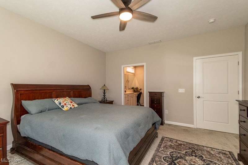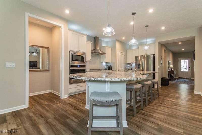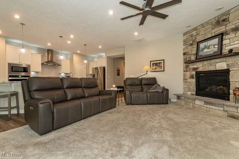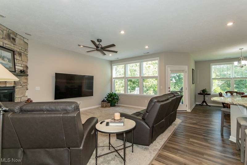 Welcome to this exquisite, move-in-ready ranch located on the serene 12th fairway of Quail Hollow Golf Course. This meticulously maintained home offers the perfect blend of luxury and convenience with a maintenance-free lifestyle. From the moment you step inside, the bright and airy interior exudes elegance and comfort, offering an inviting atmosphere for both relaxation and entertaining.The heart of the home features a gourmet kitchen that opens seamlessly into the spacious great room, complete with a cozy fireplace and panoramic views of the lush golf course. The home is designed with plenty of storage throughout, ensuring your belongings are kept organized and easily accessible.Step outside onto the fenced patio, an ideal space for pets or enjoying a peaceful morning coffee while overlooking the expansive yard and golf course. The master suite offers a private retreat with a luxurious glamour bath, making it the perfect place to unwind after a long day.Currently, the third bedroom is being used as an office, but it can easily be transformed to suit your needs. With a three-car garage and additional exterior maintenance like lawn care, mulch, and snow removal included, you can enjoy worry-free living in a tranquil setting.This home offers the ultimate in comfort, convenience, and stunning views. With a paid membership you can enjoy two 18-hole championship golf courses with a clubhouse, pro shop and practice facilities and a large swimming pool, pool house and state-of-the art fitness center. Don't miss the chance to make it yours!