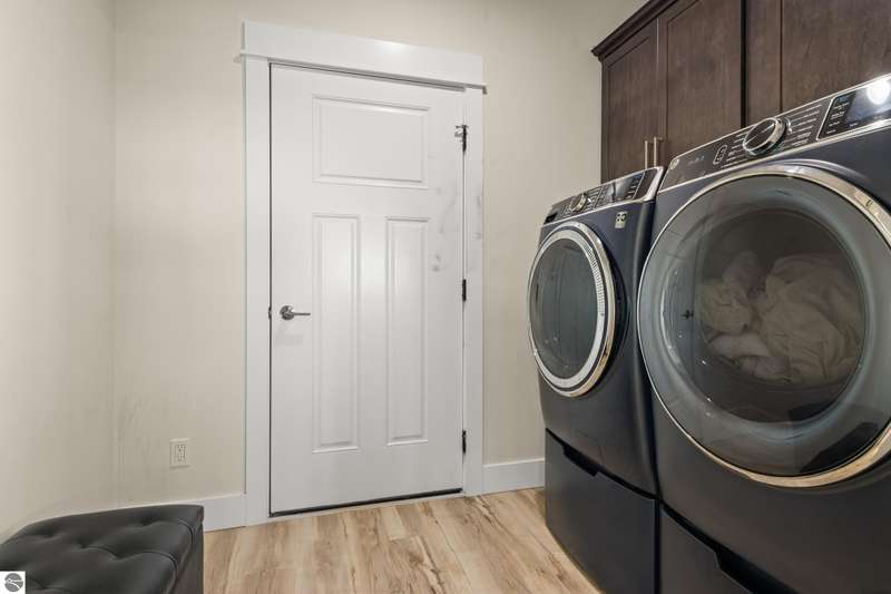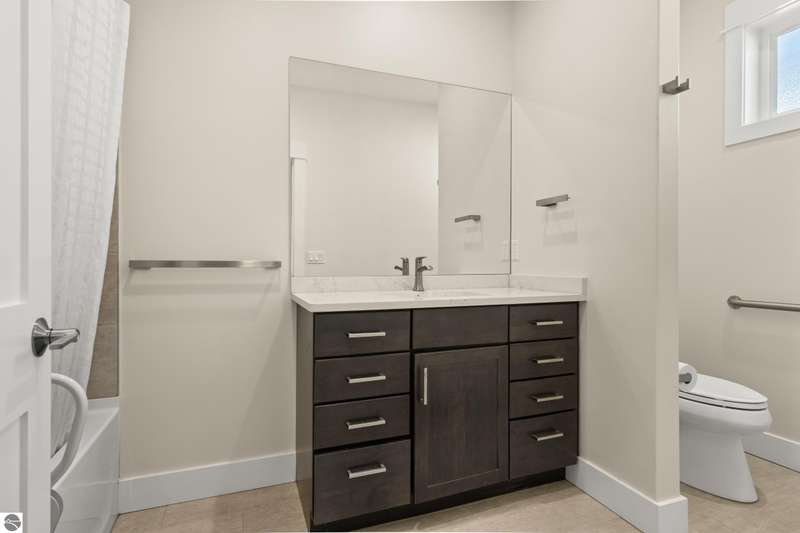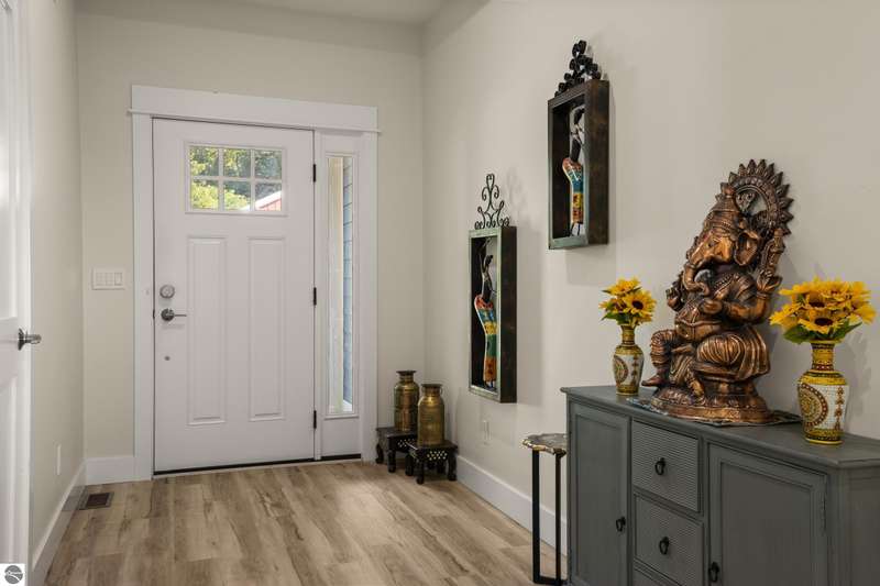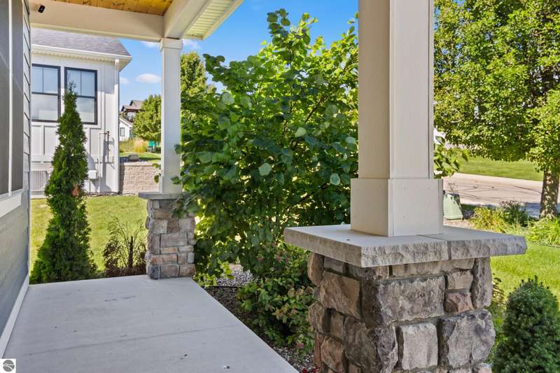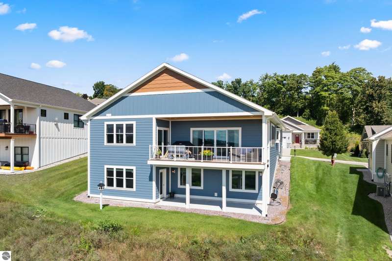 Welcome to Eagles View -- One of Traverse City's Premier Communities! This like-new, one-owner custom-built home offers the perfect blend of style, comfort, and functionality in one of Traverse City's most desirable developments. Its sweeping views make a stunning, picturesque backdrop. Thoughtfully designed with attention to detail throughout, this residence provides the ease of main-floor living in an open and inviting layout. The spacious primary suite features a private bath and a walk-in closet. The primary bedroom has a trayed ceiling to add to the luxurious look. The bright and modern kitchen is equipped with granite countertops, stainless steel appliances, a large island, a pantry, and extra shelving. The living and dining areas showcase a trayed ceiling, a stunning stone-surround gas fireplace, and double...yes, double sliding doors that open to a private rear patio -- perfect for relaxing or entertaining. Luxury vinyl plank flooring runs through the main living areas, and the home includes central air conditioning for year-round comfort. All of the bathrooms have tile flooring. The main floor also offers a convenient laundry room just off the attached two-car finished garage. The finished lower-level walk-out includes two additional bedrooms, a full bathroom, a spacious family room, a recreational area, and ample storage space. Professionally landscaped by Living Art Landscapes, the yard is equipped with irrigation and provides a serene outdoor oasis. This home is ideally located just minutes from downtown Traverse City, Munson Medical Center, shopping, schools, and numerous hiking and biking trails.