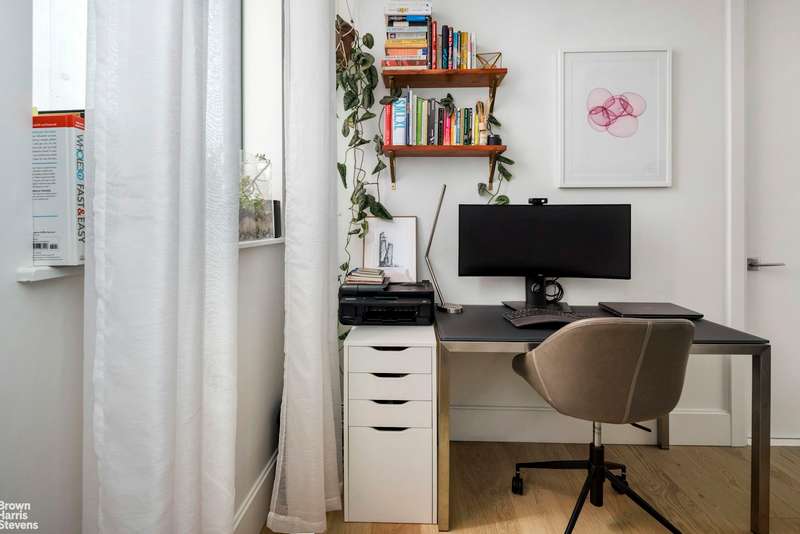 Introducing Residence 801, a thoughtfully designed one-bedroom home offering a spacious windowed home office, ample storage and beautiful oversized windows with unobstructed views of the Manhattan skyline and MoMa PS1. The western exposure brings an abundance of natural light creating a warm, light filled ambiance.