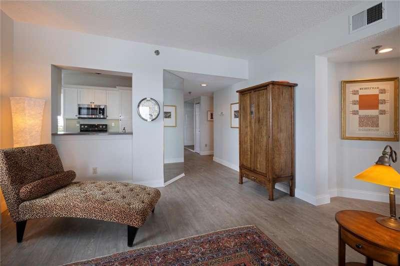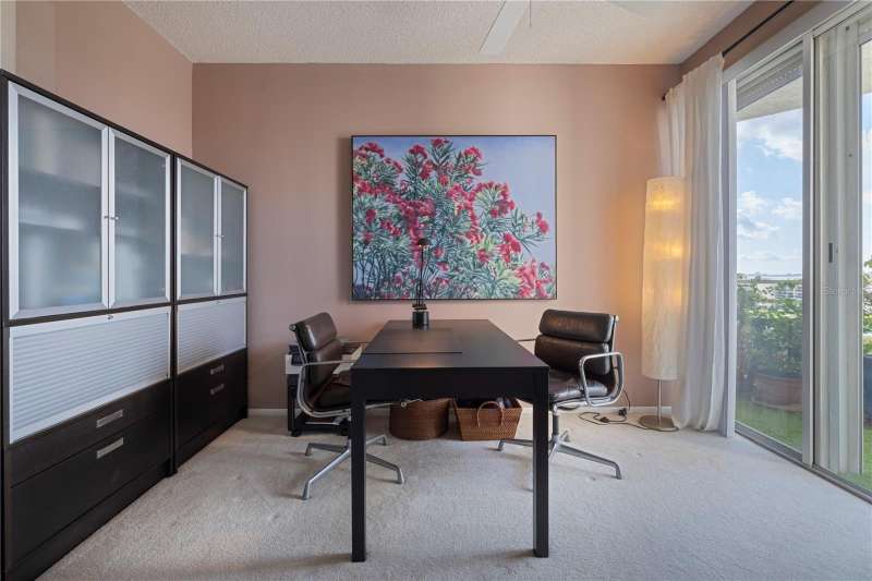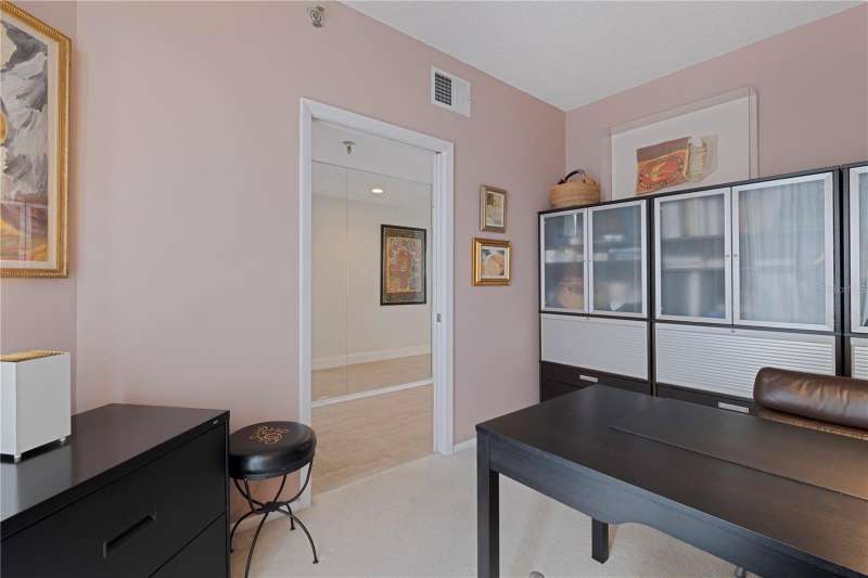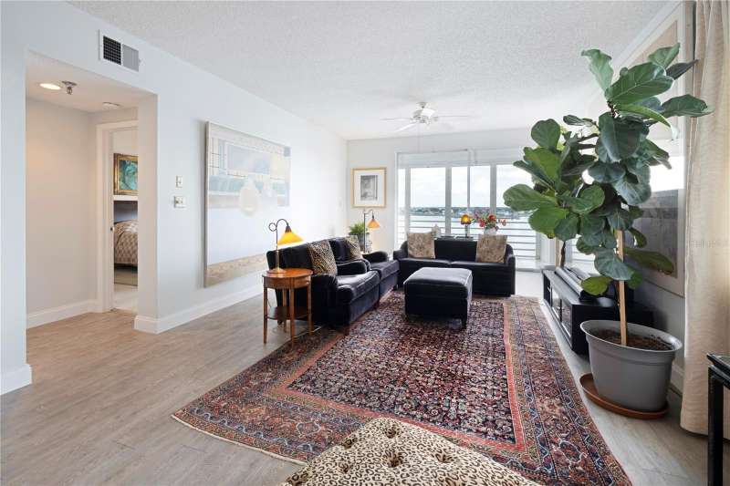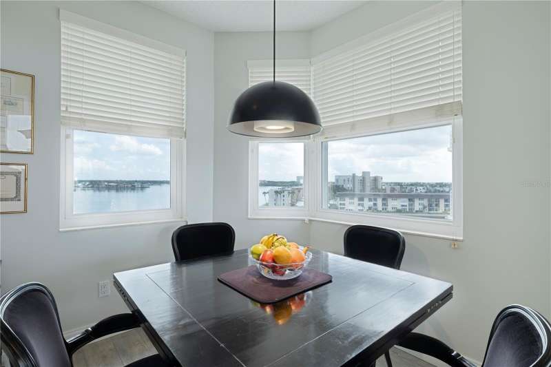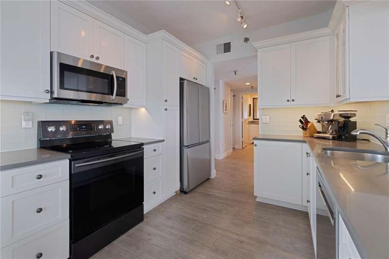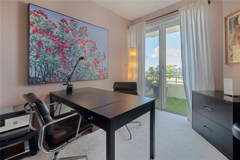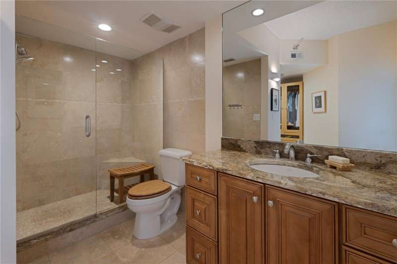 This fifth floor luxury condo has breathtaking views of Boca Ciega Bay. It’s located on a 24 hr Guard Gated island community developed by award winning JMC Communities. This desirable corner unit comes with two balconies, the living room with unobstructed wide water views and the kitchen with dining area overlooking the Marina and clubhouse pool. This is a two bedroom, two bath unit with a den/office/bonus room. All rooms were completely remodeled in 2018. The kitchen has solid wood shaker cabinets with quartz countertops, roll out drawers (soft close) and stainless steel appliances. The main living area is an open floor plan, 9' ceilings throughout and inside laundry. The remodeled primary bathroom features newer stone ceramic tile flooring, a frameless glass shower door, and a newer vanity with granite countertop. The walk in closet is customed designed with glass door enclosed wardrobes. The guest bathroom has been totally updated with newer shower tile, newer vanity with granite counter top, and a new frameless glass shower door. Other improvements include a new HVAC system installed in 2024, a new water heater in 2024, and Hurricane impact windows. There are Hurricane shutters on all of the openings for added protection and peace of mind. The building passed the milestone inspection. The roof on the building was replaced in 2024. The reserved parking space is under the building #119 (is the coveted space by the lobby door). Harbourside is a guard gated (24 hour) complex with many amenities including pool, his and hers fitness centers, shuffleboard, pickleball, tennis, hot tub, electric car charging stations, car wash stations, recently renovated clubhouse with many social events throughout the year, library, card room, billiards room, arts and crafts room, wood working area, yoga and water exercise classes. There is a 1.5 mile walkway around the complex along the waterfront which is lit up for nightly walks. Come see what resort living in Florida is all about. You can live your tropical, island dream here in Harbourside.
