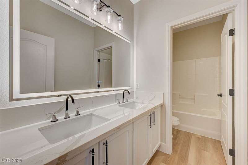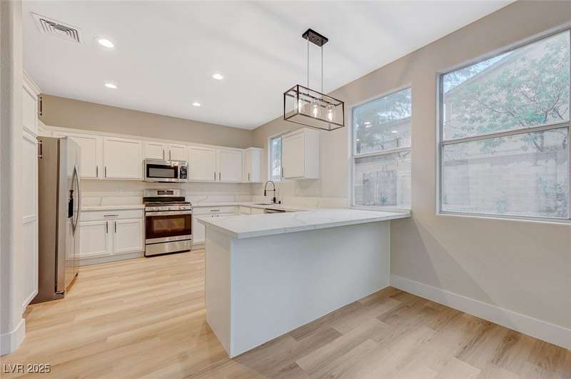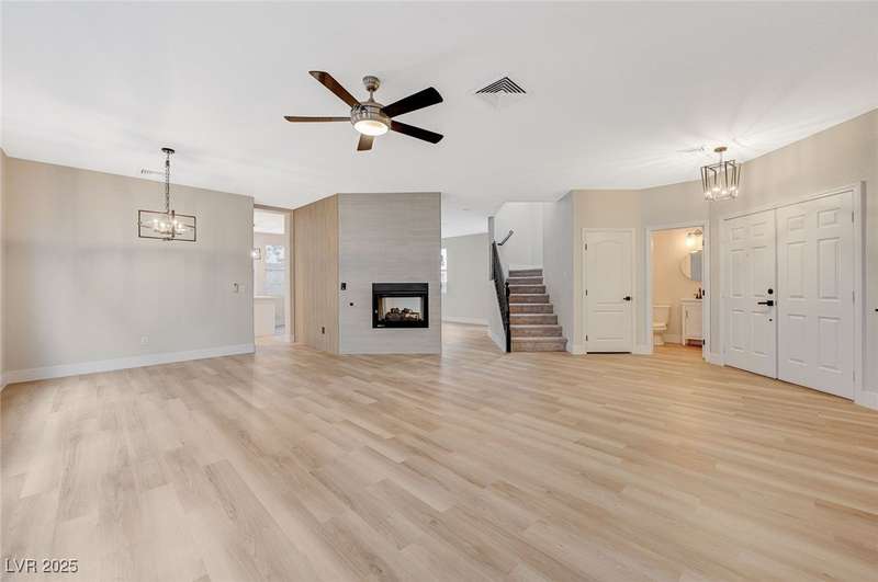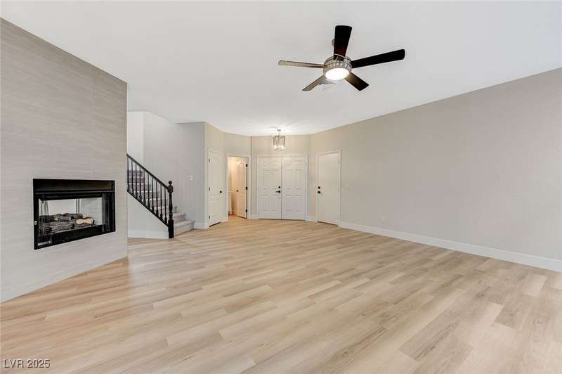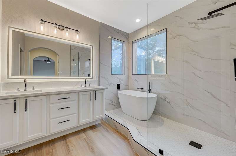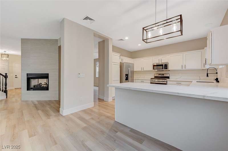 Step into a beautifully remodeled home in the highly desirable Southern Highlands community, where natural light pours through open spaces. The bright, updated kitchen with abundant storage flows seamlessly into a welcoming living area anchored by a modern double-sided fireplace, perfect for cozy mornings or entertaining. Upstairs, the primary suite feels like a retreat, featuring a spa-inspired bathroom with a soaking tub, separate shower, and dual vanities—ideal for unwinding after a long day. The manicured, low-maintenance backyard offers a private escape, perfect for relaxing or hosting friends. Nestled on a tranquil, tree-lined street just minutes from parks, schools, shopping, and dining, this home is designed for comfort, style, and effortless entertaining in one of Las Vegas’ most sought-after neighborhoods.