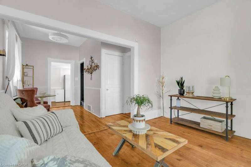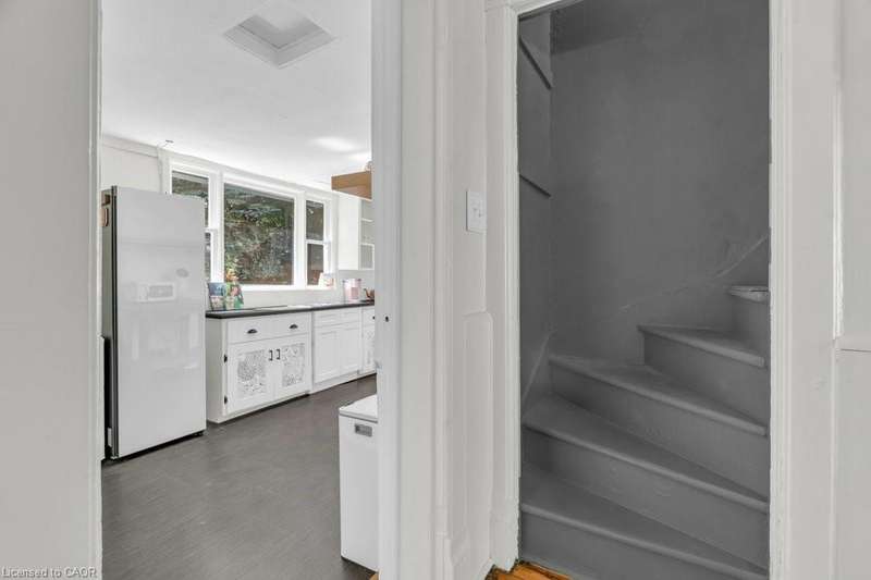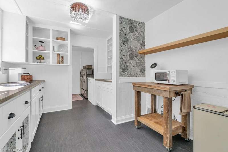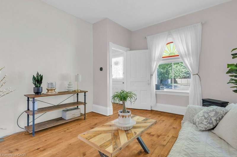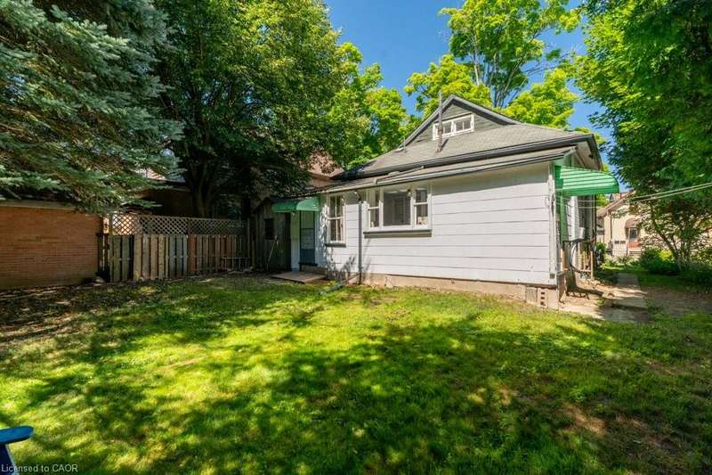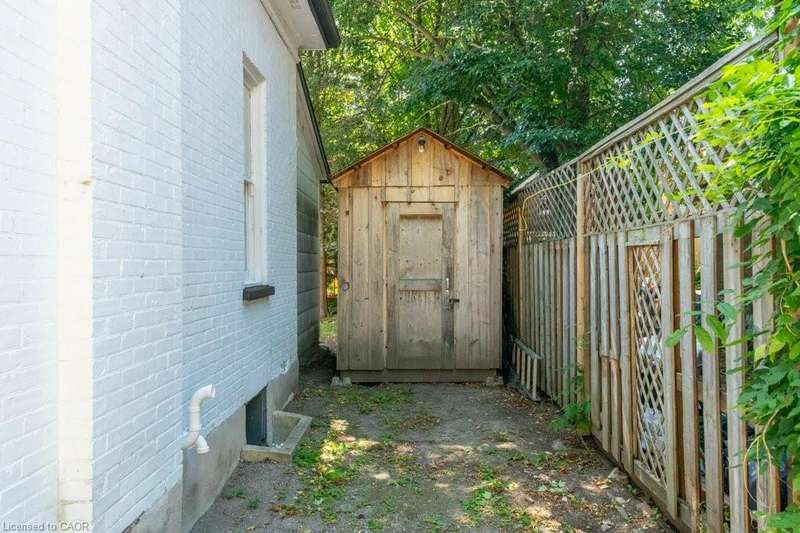 YOUR DREAM HOME MAKEOVER STARTS HERE—WITH A $5,000 HOME DEPOT GIFT CARD! Transform this charming early 1900s cottage-style heritage home with new appliances, updated flooring, modern furniture, or even a backyard deck. The possibilities are endless! Nestled on a quiet street overlooking the picturesque beauty of Victoria Park, this home is full of character and charm. Imagine early morning walks, peaceful evening strolls, and coffee on the front porch as part of your daily ritual. The white brick exterior, restored wrought iron railing, and vibrant red front door create a captivating first impression. Enjoy tall ceilings, original sun-themed stained glass windows, and hardwood floors throughout the main living area. The main floor features the master bedroom, second bedroom, living/dining area, kitchen, laundry, and bathroom—creating a seamless and relaxing lifestyle, all on one floor. The upstairs bedroom offers a versatile space for a studio, guest bedroom, or quiet home office. Sunlight pours through the large kitchen windows, making it a warm and inviting space to begin your day. Looking to renovate the kitchen? The existing oven outlet allows you to easily swap out the cooktop for a new stove if desired. Bathroom upgrades include a new shower/tub with subway-style walls, elegant brushed nickel fixtures, modern lighting, and a stylish vanity. Additional improvements: new attic insulation for improved efficiency, updated plumbing coming into the home with new shut-off valves, and a new water softener that is owned and a water heater that is rented. Step outside to a peaceful backyard retreat—generous in size, wonderfully private, and shaded by a canopy of trees. The cute wooden shed provides convenient storage for gardening tools and equipment. Unlock the full potential of this property with options to expand, renovate, or fully make it your own. Don’t miss this rare opportunity to own a heritage home in one of Kitchener’s most treasured neighbourhoods!