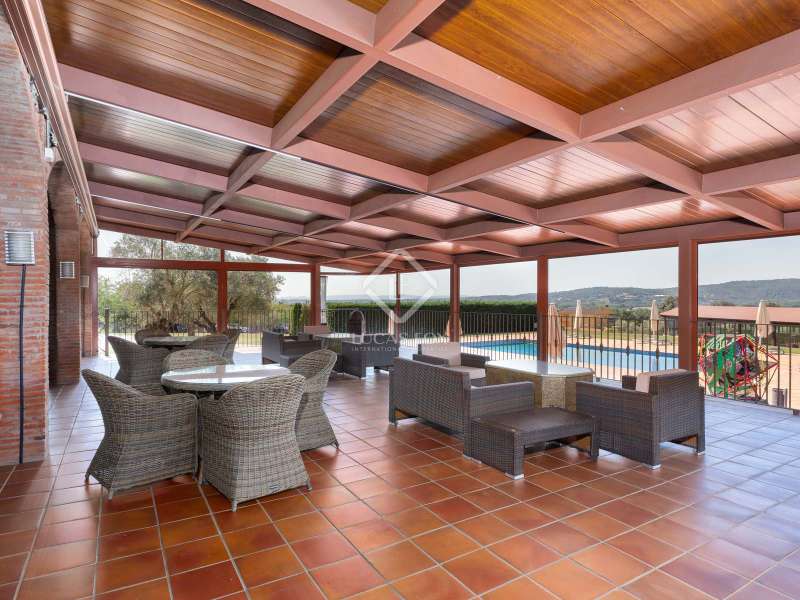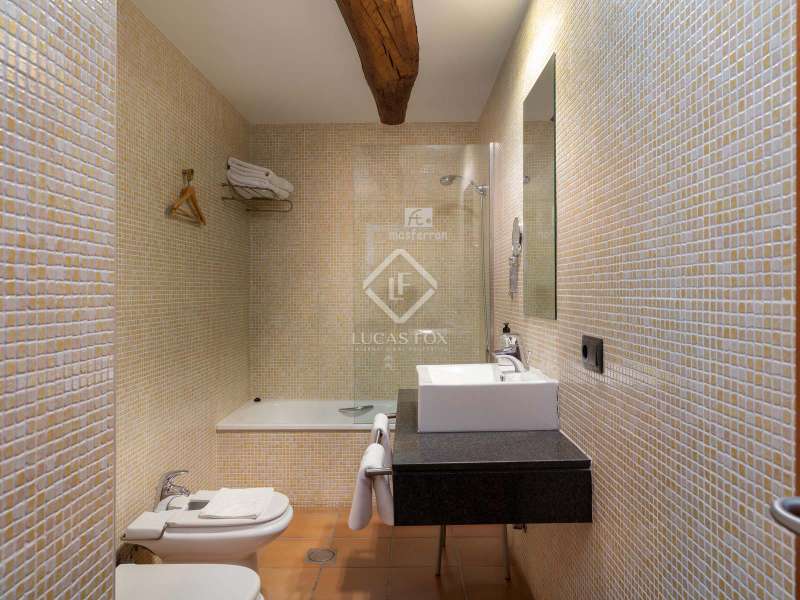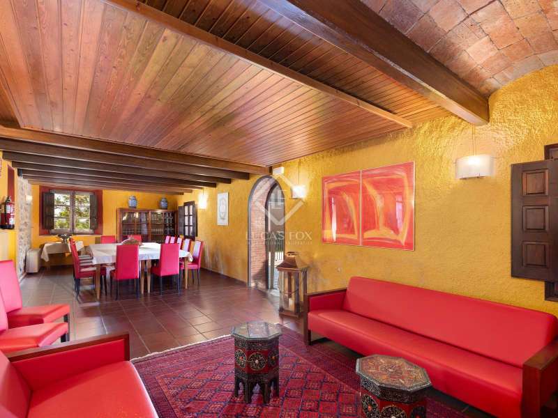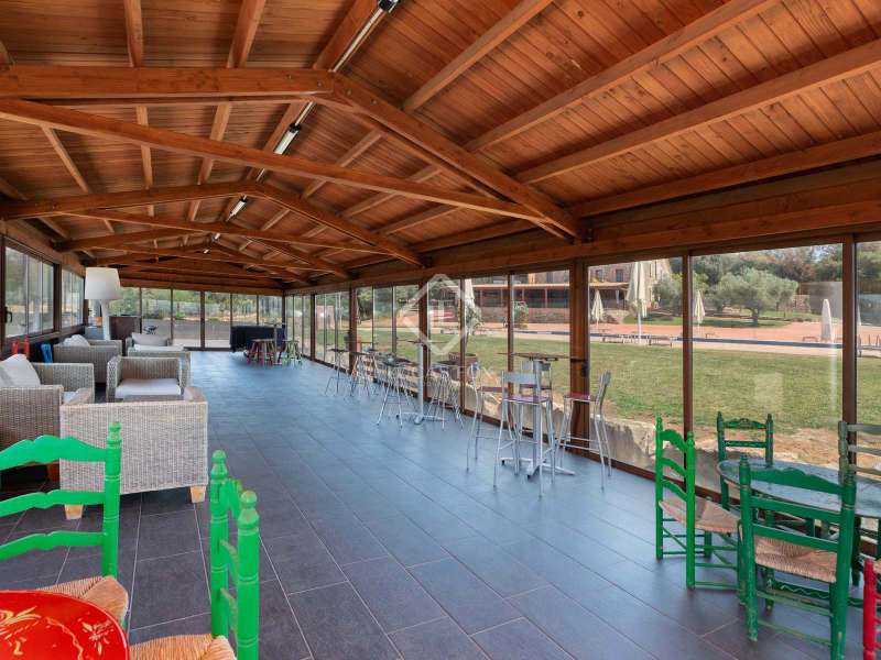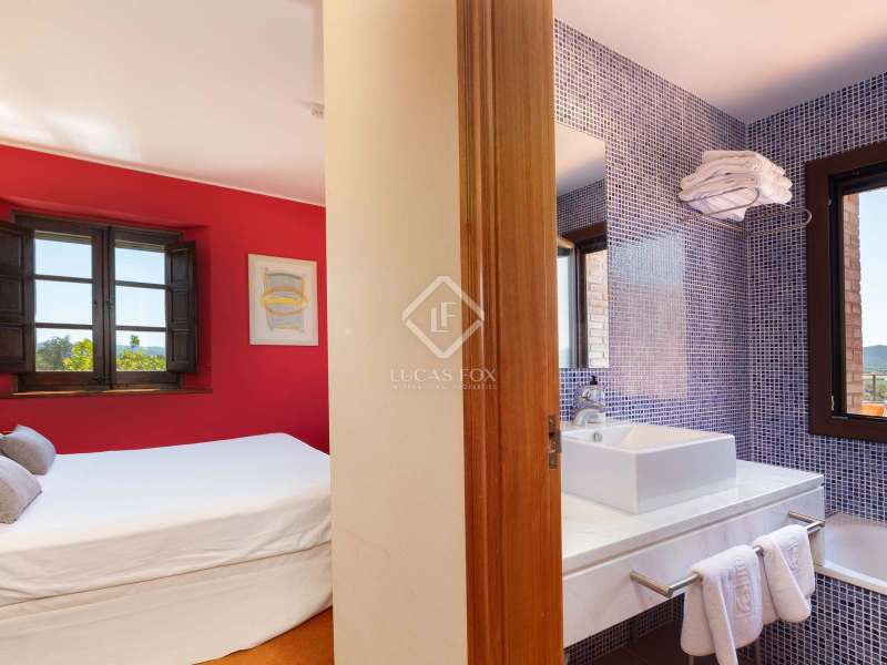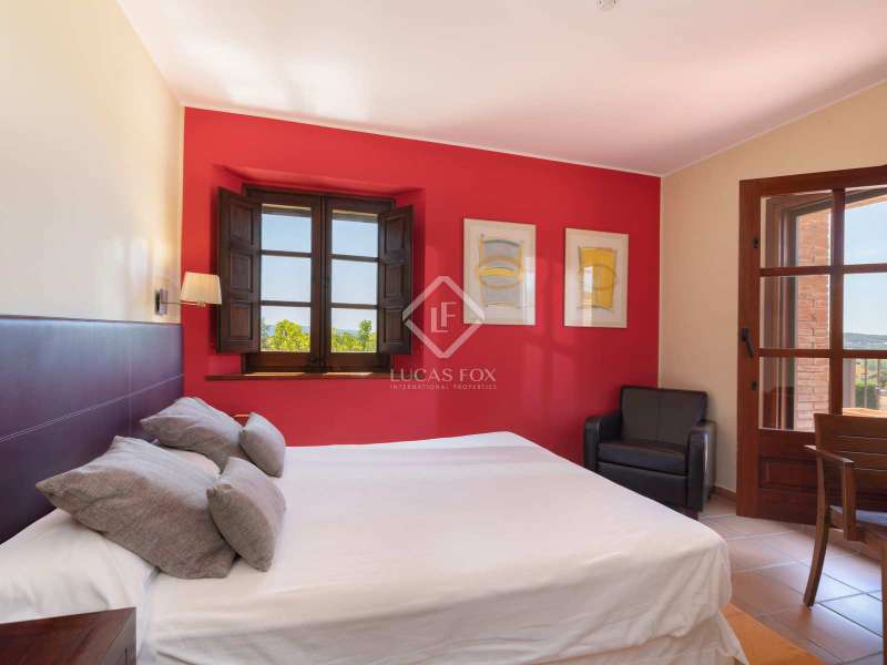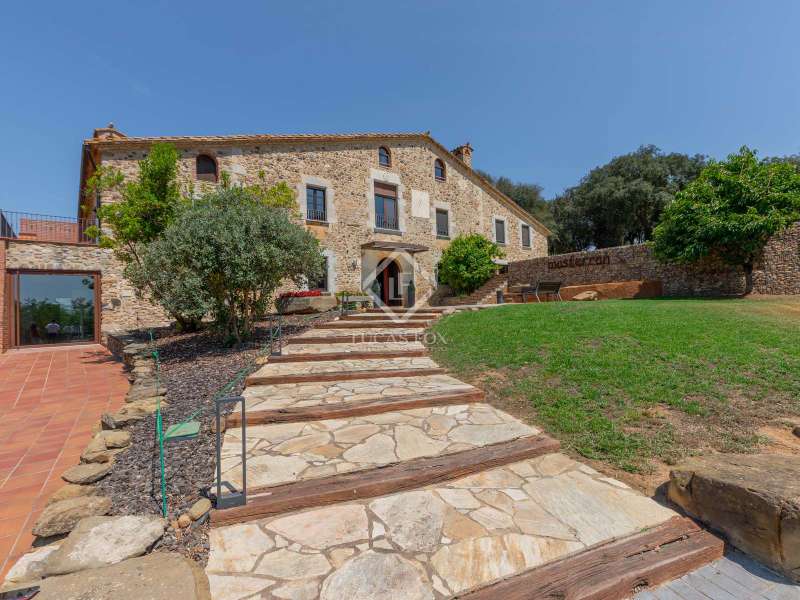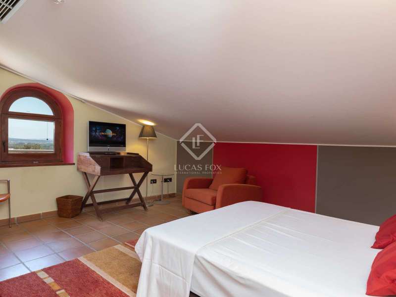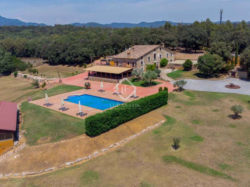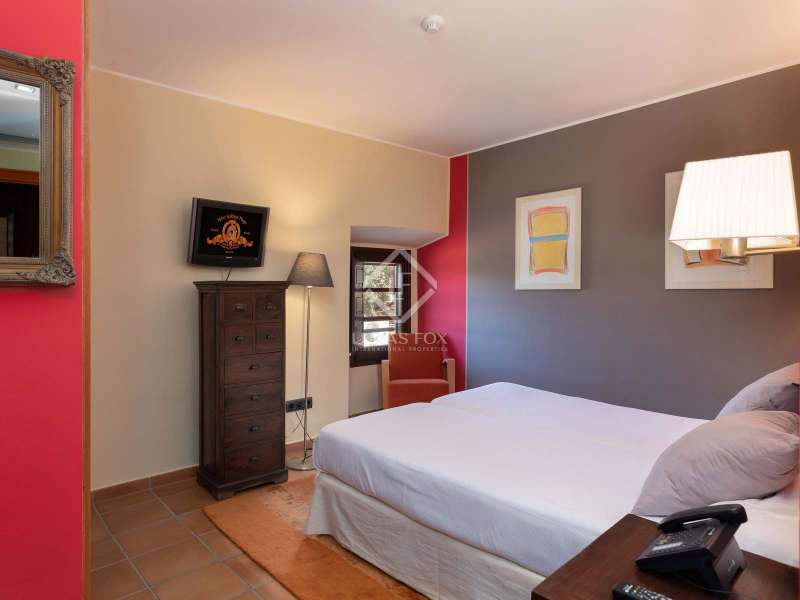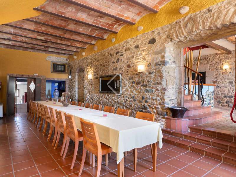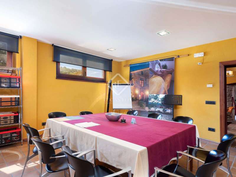 This beautiful property located on the edge of a village near Girona enjoys country views and privacy while also being very well-connected, close to all amenities. Fully renovated in 2003, the property is prepared to run as a 12 en-suite bedroom rural hotel and is offered in perfect condition. Offering various conference and events rooms, the property is ideal for corporate and family events. The traditional stone masia accommodates a welcoming reception room, meeting room, TV room with bar area, wine cellar, library, two big dining rooms, spacious professional catering kitchen, large covered terrace for summer dining, toilets and a laundry room. The first floor has 9 en-suite bedrooms, and the second floor houses the remaining 3 en-suite bedrooms. All rooms have air conditioning, TV, telephone and gas central heating. Annex to the main building, there is a separate construction with private entrance that compromises 7 therapy rooms and 2 bathrooms. It could easily be converted into owner or staff accommodation. In addition to this main building, there is a separate 100 m² events hall in the garden that enjoys stunning views across the valley. Below this hall there are 135m² of changing rooms, toilets and showers, gym, sauna and storage rooms. In the garden there is a magnificent 150m² swimming pool, tennis court and porch garage area. 2.5 Ha of the property is fully fenced in. An ideal property for anyone wishing to set up a business related to corporate events, retreats or sport holidays.