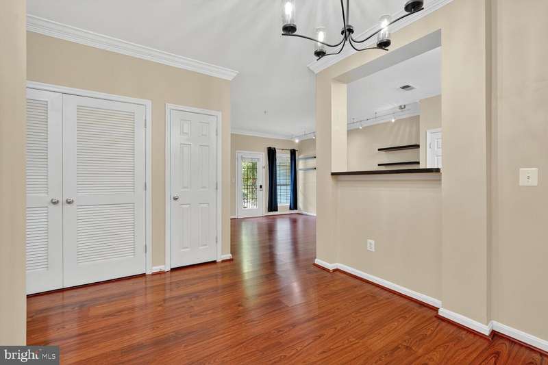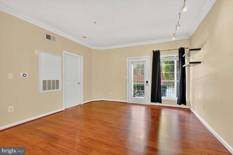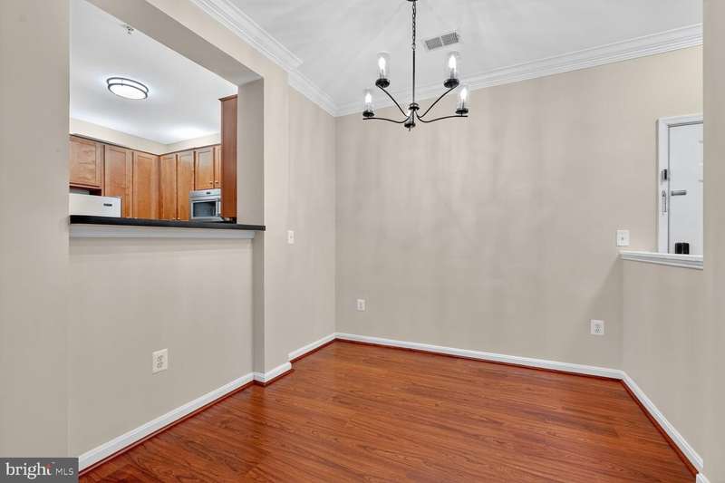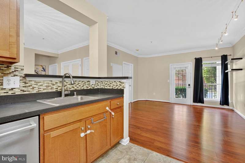 Welcome to 4850 Eisenhower Avenue #119, a fabulous ground-level condo with 2 bedrooms and covered garage parking in Alexandria's popular Exchange at Van Dorn! Classic wide-plank floors flow throughout the living spaces and bedrooms. Nine foot ceilings give the home a spacious feel. The kitchen features a ceramic tile floor, 42-inch cabinetry with brushed nickel hardware, stainless appliances, and a useful pass-thru to the separate dining room. The dining room displays a chic light fixture & both the living and the dining room are enhanced by elegant crown molding. The bright living room has track lighting and a door to the private patio where you can enjoy your morning coffee or relax with a book. Both bedrooms are generously sized, with the primary featuring a ceiling fan and large walk-in closet, while the second bedroom offers dual closets and a big double window letting in tons of natural light. The updated hall bath includes stylish tile flooring, a sleek vanity with gold hardware, and a large mirror. This wonderful condo also has an in-unit washer/dryer for easy convenience. The Exchange at Van Dorn has amazing amenities: the pool, the clubhouse with a business center, fitness center, billiards room, great room, yoga room, outdoor fitness loop and dog park! There's a free shuttle to the super-close Van Dorn Metro. All commuter routes are also nearby, and it's just a quick hop to Old Town Alexandria's fun shops and restaurants!