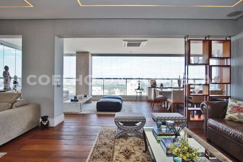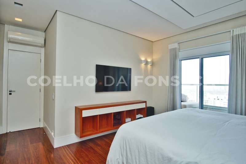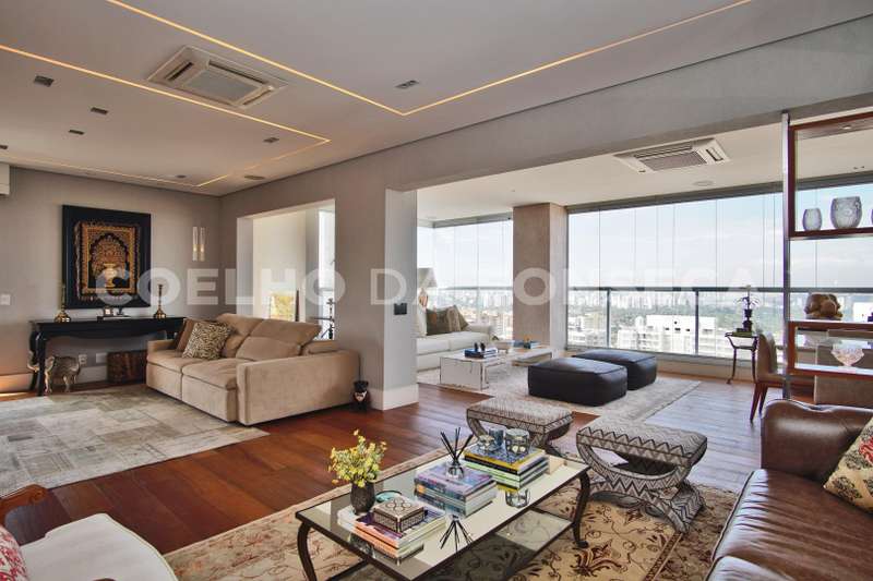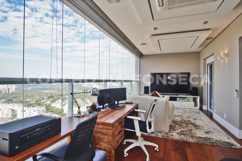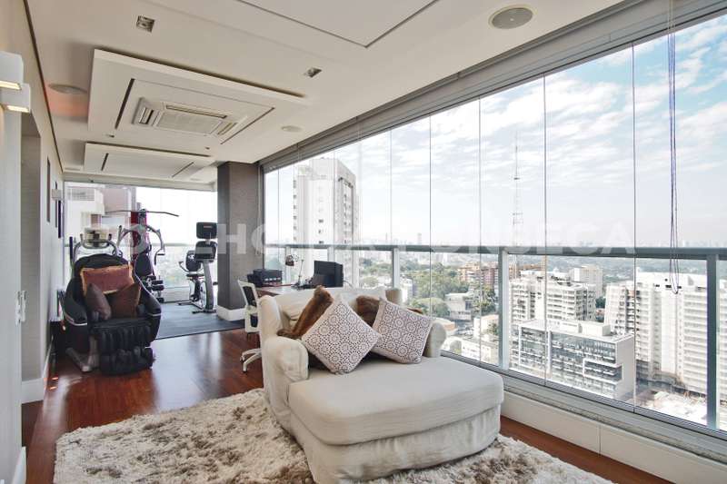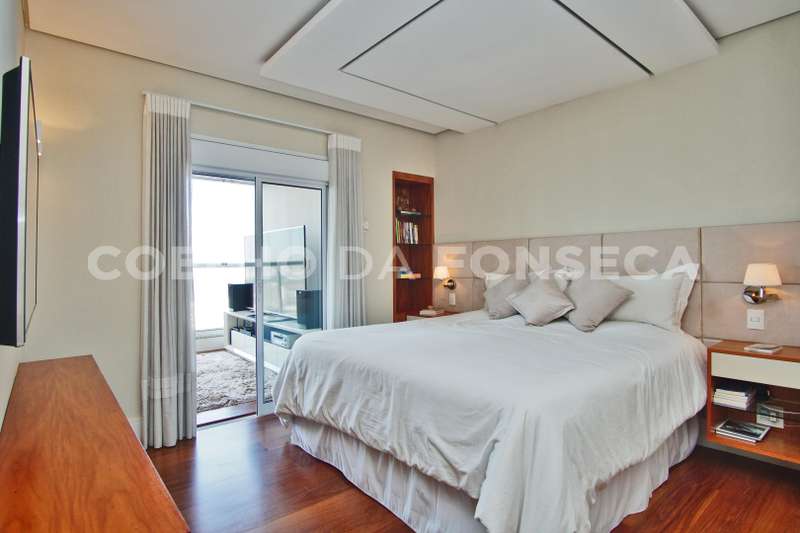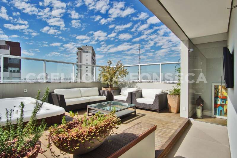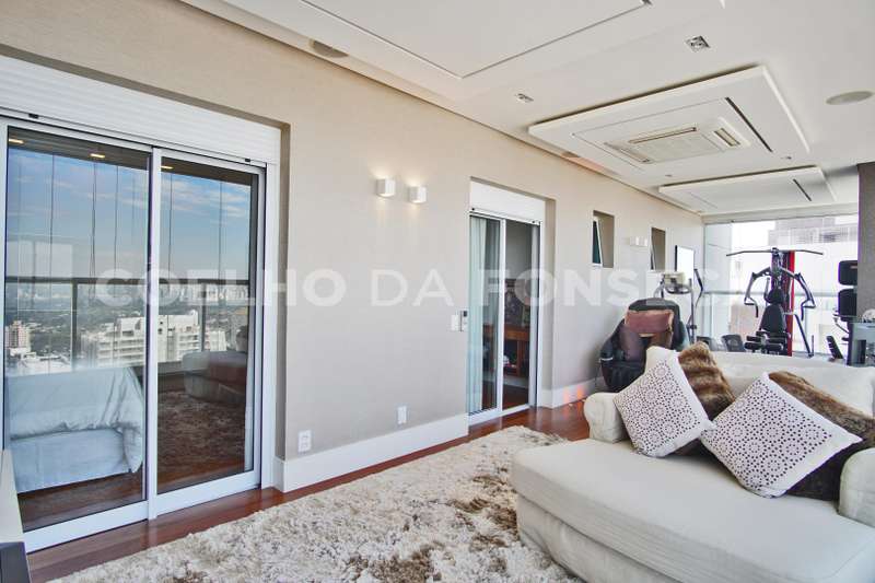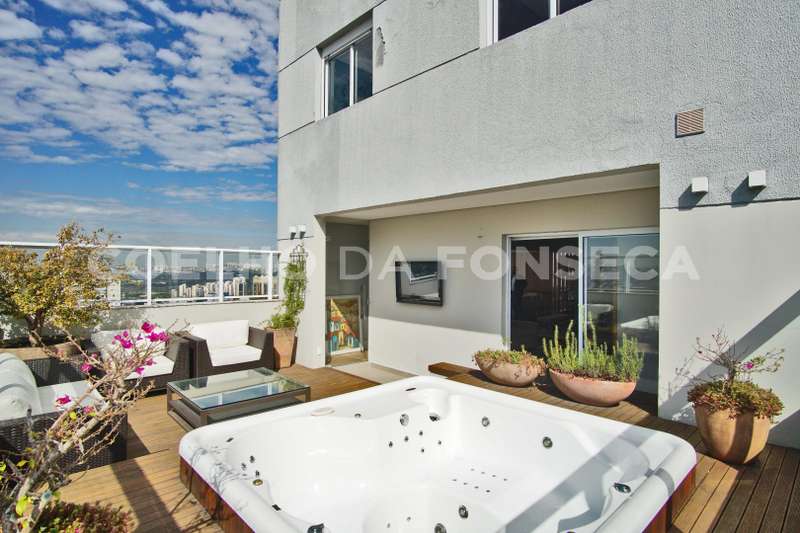 Localizada no Alto da Lapa com fácil acesso às principais rodovias e próximo ao Parque Villa Lobos. Cobertura duplex imponente, decorada com acabamentos finos e vista privilegiada. A área social dispõe de varanda gourmet integrada ao living, com acabamento em madeira de demolição, lavabo, área externa com jacuzzi e solarium. Na parte superior, quatro dormitórios, sendo três suítes, suíte máster com um terraço espaçoso. Possui ambientes com piso aquecido, ar-condicionado quente e frio e armários Ornare. Prédio com lazer completo.