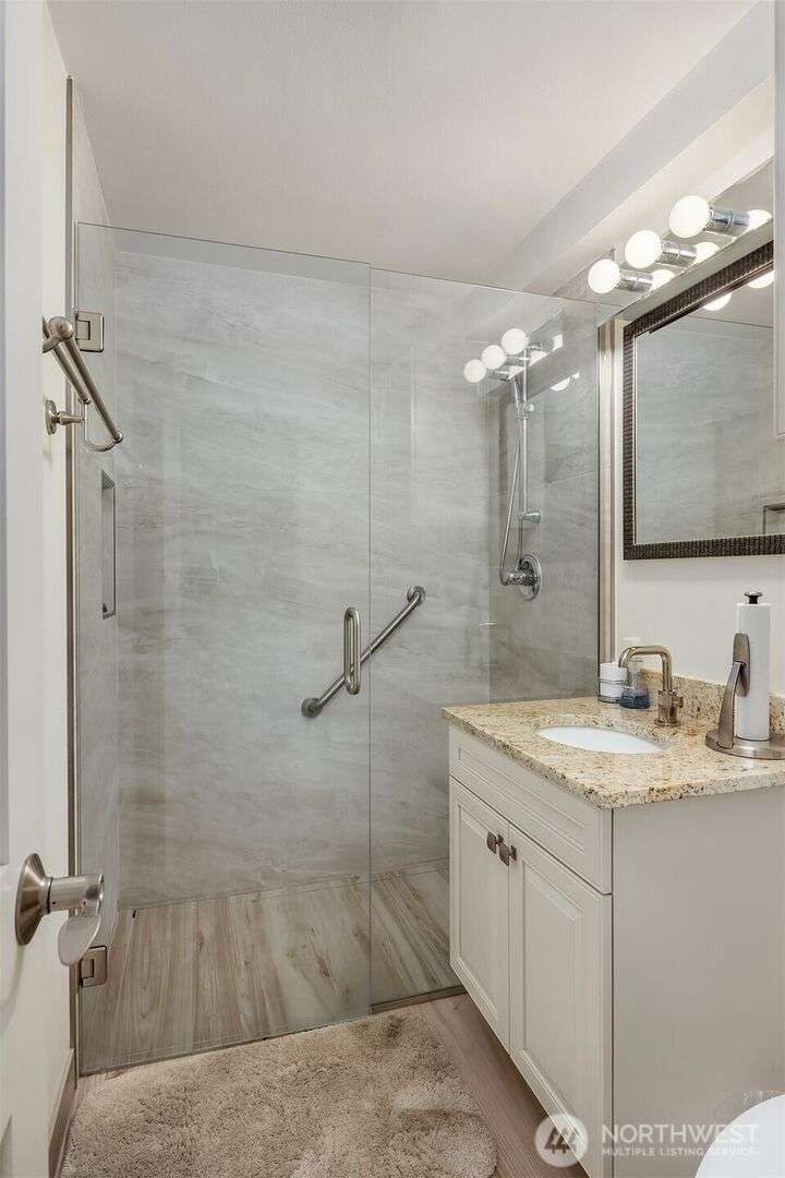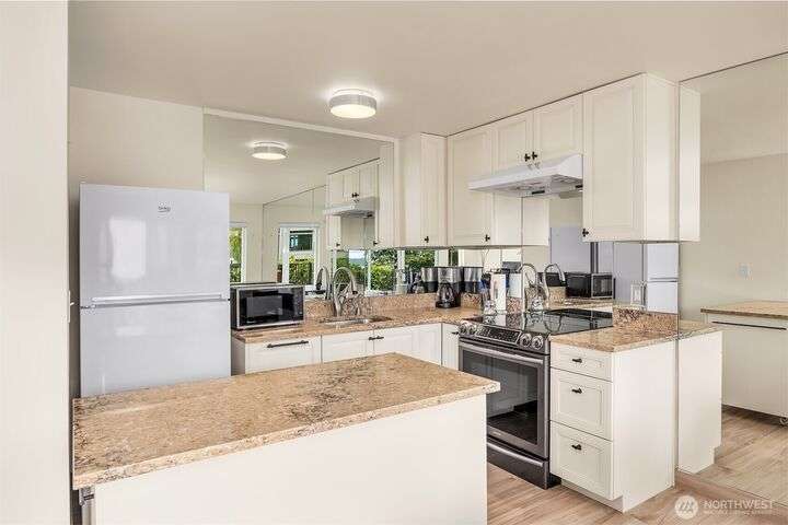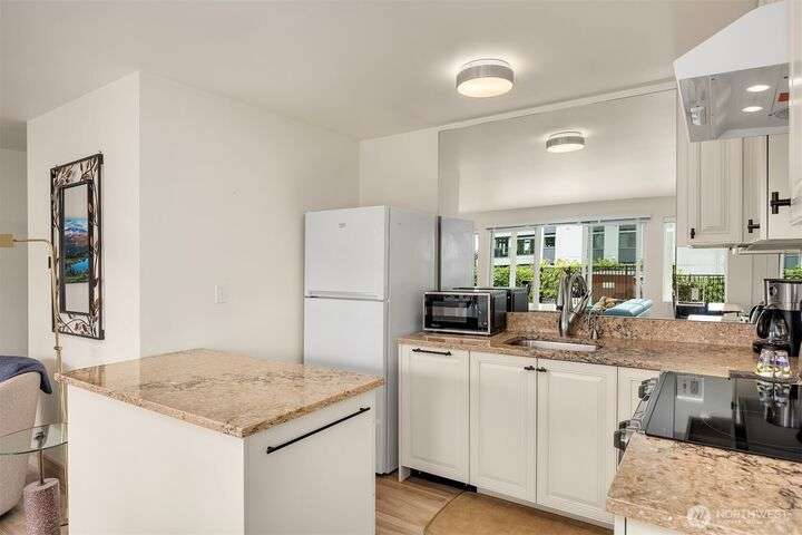 Welcome to this beautifully remodeled 1-bedroom, 1-bath condo in the heart of Kirkland. This first-floor home offers unbeatable convenience with your own dedicated parking space just steps from the front door. Enjoy stunning views of Lake Washington from both inside the unit and your private back patio, creating the perfect setting for morning coffee or evening relaxation. With its modern updates, easy access, and desirable location near parks, shops, and waterfront, this condo combines comfort, style, and everyday convenience.