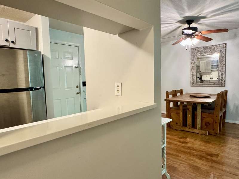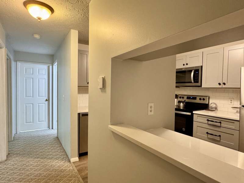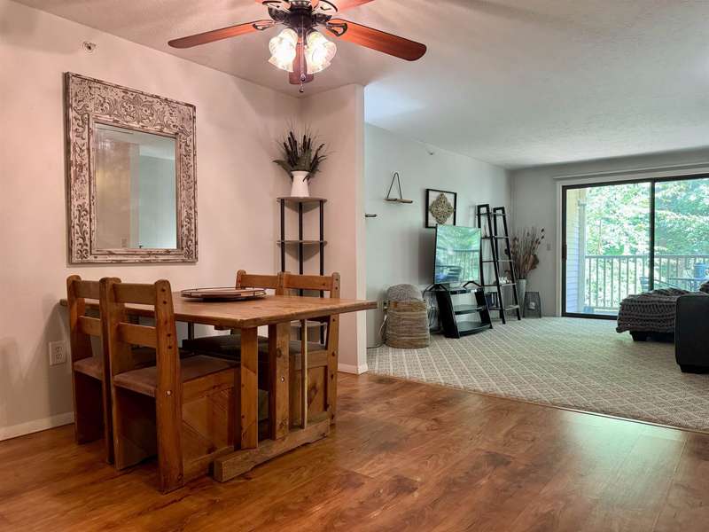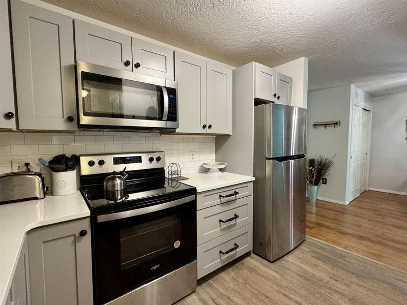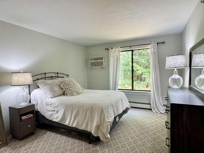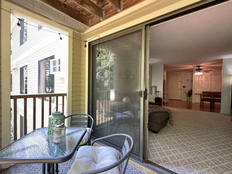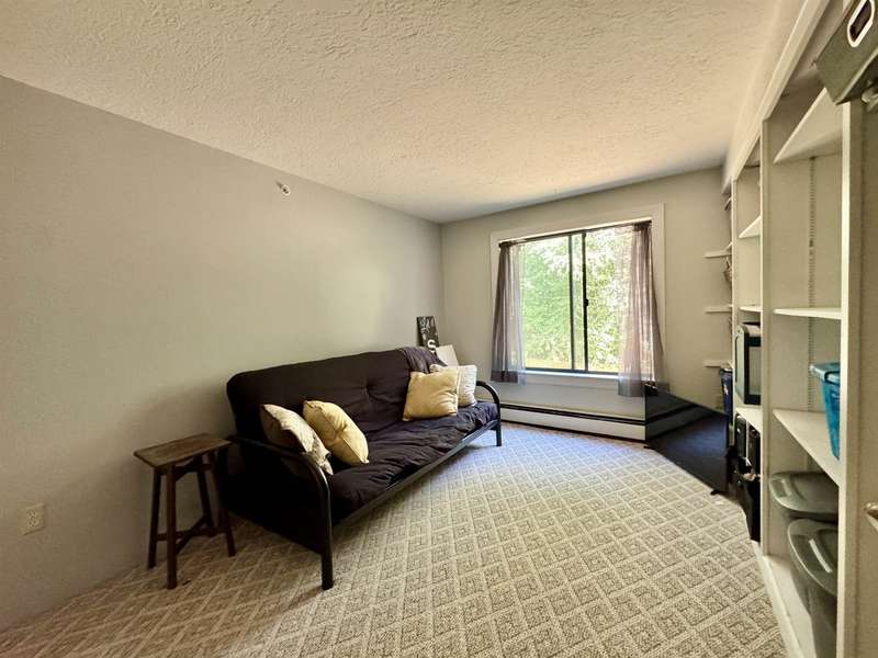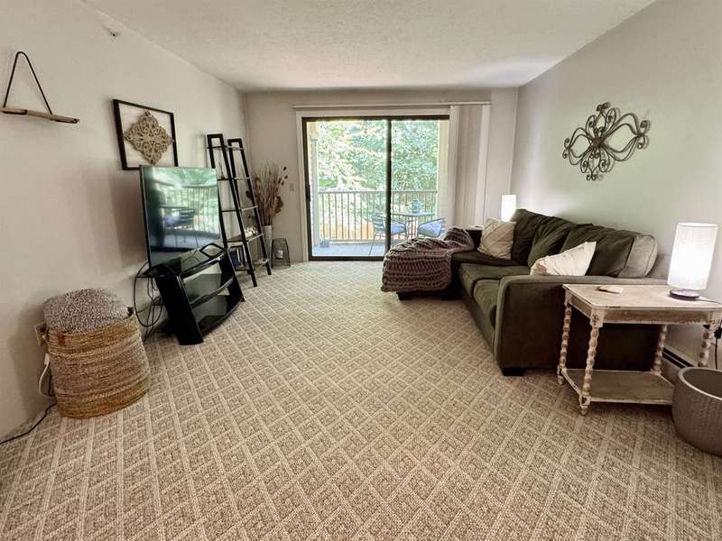 READY FOR IMMEDIATE OCCUPANCY This furnished 2-bedroom condo at Saco Woods is located on the 2nd floor and facing the backyard. Recent remodeling includes a new modern kitchen, which is a $15,000 upgrade with its soft close stylish cabinets, granite counters, stainless appliances, open shelving and convenient breakfast bar seating. There is luxury vinyl plank floors in entrance and dining area, with newer carpeting in living room. Sliding glass door opens up to a covered porch that overlooks green space. This larger design has 2 good size bedrooms with closets and one of the bedrooms has remodeled into a sitting room with a full wall of shelving to make an ideal office and guest room. A full bathroom with a new vanity. Furnished for turnkey convenience. This condo is over 1000sq’ of living space and includes a large, useful storage closet with a side-by-side washer/dryer. Saco Woods development has its own mailboxes and acres of common land to enjoy walking paths, playground and a community garden. Centrally located for easy access to and from North Conway, Conway, NH or Fryeburg Maine.
