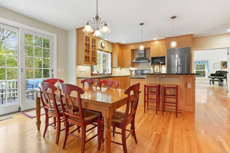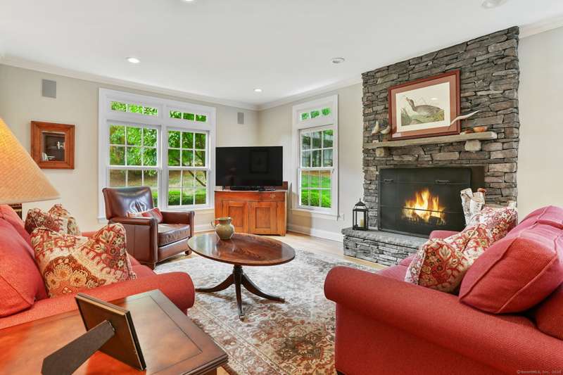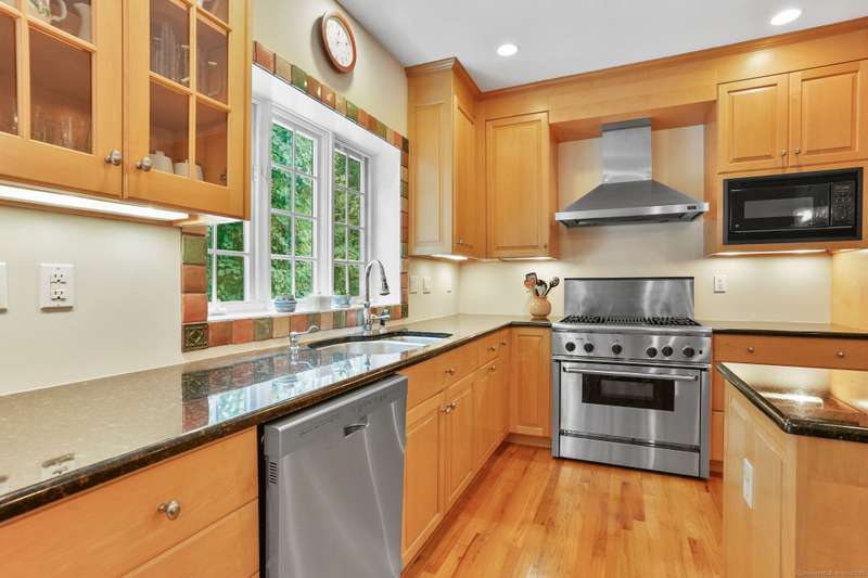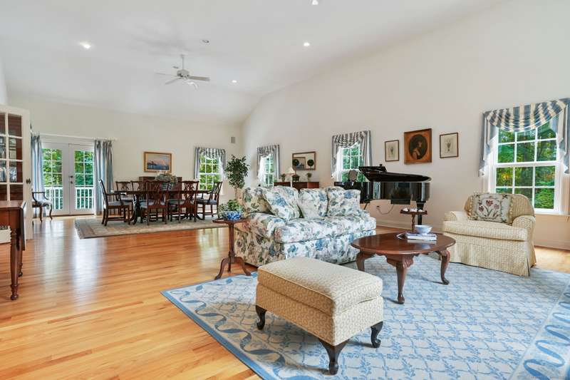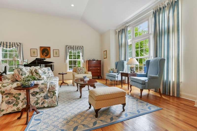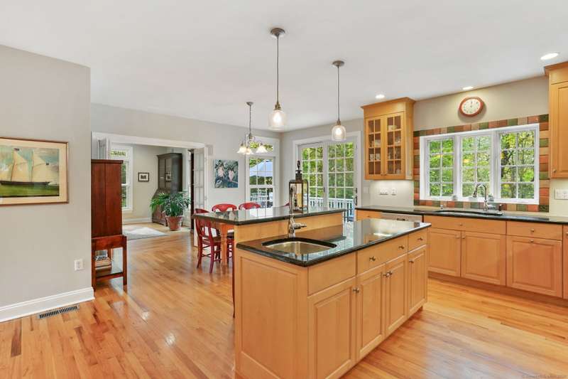 Golfview Properties is an elegant pocket of Munson built homes in Lower Easton located directly across the street from Fairfield's Smith Richardson Golf Course and Boca Raw Bar. 66 Morehouse Rd is one of the best of them! Set back perfectly from the road this quality home offers privacy and tranquility, but also convenience and proximity to town. Timeless curb appeal and beautiful landscaping (with irrigation system) welcome you as you drive down the driveway and pull into the 3-car garage. Sea grass, coastal gravel, stone walls, an arbor, and a bluestone walkway greet you as you make your way to the front door. Step into the soaring 2-story entry and make your way to the oversized combination living/dining room with its cathedral ceiling, French doors, gleaming hardwood floors, and amazing front window wall. Make your way to the gourmet eat-in-kitchen with its extensive cabinetry, granite counters and top-of-the-line appliances. The kitchen opens onto the charming family room with its