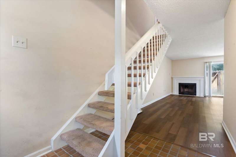 PRIME LOCATION in Stonegate! This sought-after gated community offers unbeatable convenience?just minutes from the University of South Alabama, shopping, dining, and the new Urgent Care center. Step inside to a spacious open-concept living and dining area featuring a decorative fireplace (not working-capped off), flowing seamlessly into the kitchen and out to a private back patio through double sliding glass doors. The kitchen boasts painted white cabinetry, granite countertops, stainless steel appliances, and LVT flooring throughout the main level. Upstairs, you'll find two generously sized bedrooms, each with its own full bathroom?perfect for privacy or roommates. New HVAC in 2025 (all improvements per seller) Enjoy resort-style amenities including a sparkling swimming pool, tennis court, clubhouse, basketball court, and dog park?all within the community. The $340/month HOA fee covers water, sewer, exterior building and roof maintenance, lawn care, termite bond, pest control, and 24/7 video surveillance. Whether you're a student, investor, or first-time buyer, this is a rare opportunity to own in one of Mobile's most convenient communities! All measurements are approximate and not guaranteed, buyer to verify. Buyer to verify all information during due diligence.