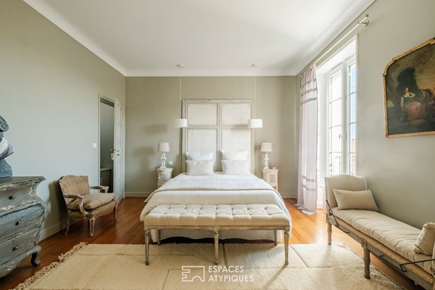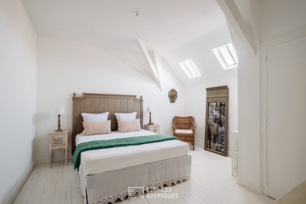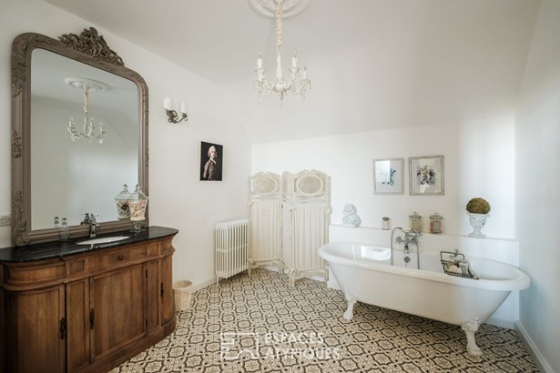 On the first floor, the sleeping area, served by a painted wooden staircase, is like the ground floor. The whole is perfectly renovated with an undeniable charm. The landing serves a master suite with its bedroom and its shower room, three other bedrooms and a bathroom with access to a roof terrace with a clear view of the park. A dressing room completes the assets of this level.