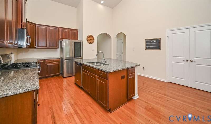 Welcome to Charleston Club in Magnolia Green, where living is designed to be easy with maintenance free exteriors! This one-level transitional rancher features almost 2,100 square feet, 3 bedrooms and 2 full baths has so much to offer with its functional open floor plan. The main living areas include wood flooring throughout and vaulted ceilings in the bright family room and kitchen. The gourmet kitchen has a large center island with breakfast bar, granite countertops, stainless steel appliances and gas cooking. The owner's suite features two walk-in closets, a huge en-suite full bath with tile flooring and shower. Other notable features include a screened in porch, double width concrete driveway, two car garage, dimensional roof, stone and vinyl siding and so much more. Charleston Club offers its own private pool, clubhouse, fire pit, and bocce ball court. As a resident of Magnolia Green, you'll have access to an impressive array of amenities, including an aquatic center, walking paths, championship golf, social activities, a golf shop, restaurant, tennis and pickleball courts. Come and experience the world class amenities. This Home is Truly One You Don't Want to Miss!