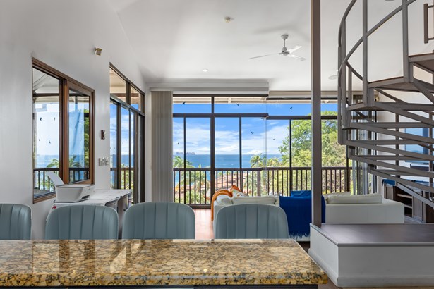 Welcome to Casa Veranera, an exquisite estate perfectly positioned in the heart of Playa Flamingo, one of Costa Rica’s most sought-after beach destinations. Tucked just steps behind the beachfront The Palms condos, Casa Veranera enjoys a prime location offering immediate access to the soft white sands and sparkling waters of Playa Flamingo, while maintaining complete privacy and tranquility.Surrounded by lush, vibrant landscaping, this magnificent three-story home masterfully blends elegance with the natural beauty of Costa Rica. The main 4-bedroom, 4-bathroom home occupies the second and third levels, while the ground floor features a fully independent 2-bedroom, 2-bathroom unit and a separate 1-bedroom, 1-bathroom caretaker’s suite. Warm organic materials, and expansive glass doors create a seamless flow between indoor and outdoor living.The main interior offers an open layout with large, bright living areas that have high ceilings. The chef’s kitchen has stainless steel appliances, custom cabinetry, and granite counter tops. It is a wonderful spot to host laid-back morning meals or fancy evening gatherings. The adjacent dining and living room areas connect effortlessly to a covered outdoor terrace, perfect for al fresco dining while enjoying coastal breezes and beautiful ocean views.At the heart of the interior, a grand spiral staircase leads to the third-story deck, where a spacious office with ocean views provides a tranquil setting for remote work or creative pursuits. This versatile space can also be easily converted into an additional bedroom, if desired.The ground floor showcases a fully independent 2-bedroom, 2-bathroom guest house, complete with its own living room, dining area, and fully equipped kitchen. Also on the lower level is a dedicated service quarter, featuring a separate bedroom, kitchen, and dining area. The current caretakers have lived onsite for 12 years and are willing to stay on.Outdoor living is a true highlight of Casa Veranera. A covered patio invites you to relax with your morning coffee or enjoy cocktails at sunset, all while soaking in the sweeping views of greenery and the Pacific. A round dipping pool adds a refreshing touch, and the large outdoor terrace is ideal for entertaining or simply basking in the sun. This home perfectly captures the essence of luxurious yet laid-back coastal living.The property sits on 2,224 m², with an additional bonus untitled 2,595 m² lot located directly behind the home. The entire estate is securely enclosed behind private gates.Less than a 2 minute walk from the white sands of Playa Flamingo, Casa Veranera offers unbeatable access to Playa Flamingo, one of Costa Rica’s most iconic beaches, known for its calm turquoise waters, world-class fishing, and stunning sunsets. This exclusive enclave is home to the new luxury marina, gourmet restaurants, and vibrant community life, making it a top destination for both relaxation and adventure. Whether you're seeking a serene retreat, a family compound, or a high-performing rental property, Casa Veranera delivers it all. Don’t miss this rare opportunity to own a private coastal estate in the heart of Flamingo—schedule your private tour today.