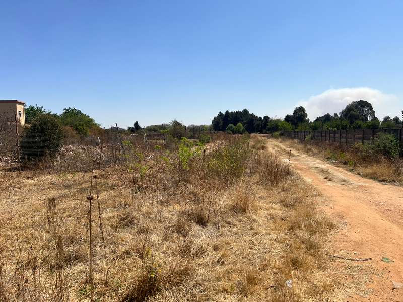 New to market, this parcel of land (8565m2) is one of two adjacent properties owned by the same family, sold separately or together as one large tract of land at a discounted price. Panhandle access (cul-de-sac). No municipal services, but access to Eskom on main road and CoJ water supply