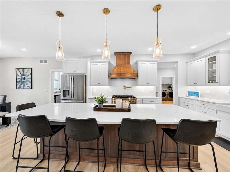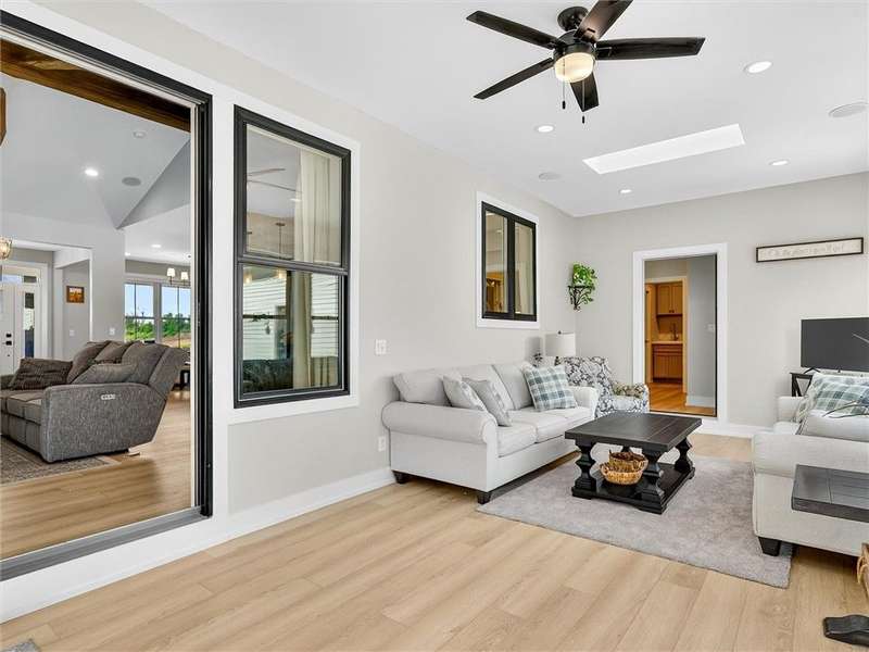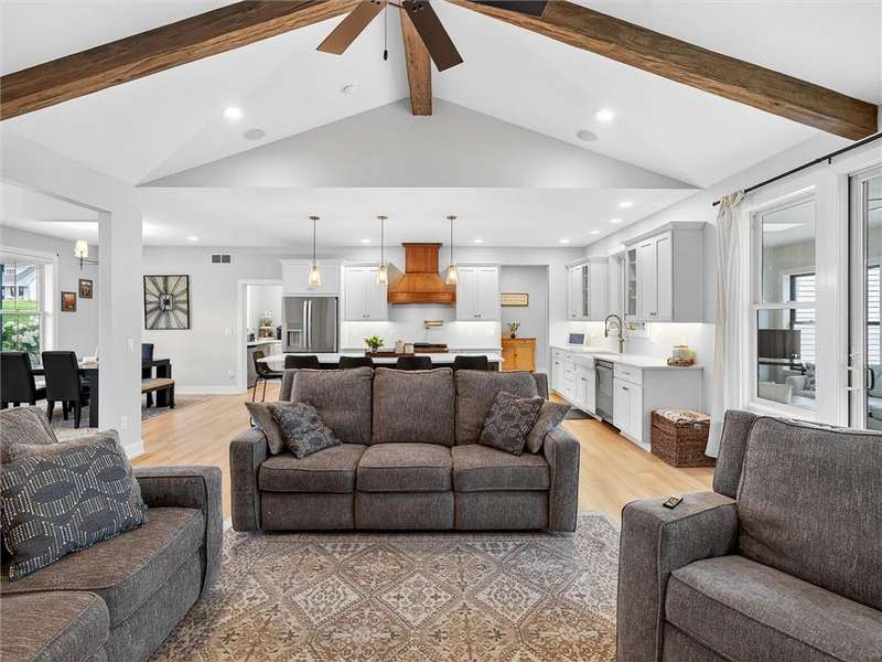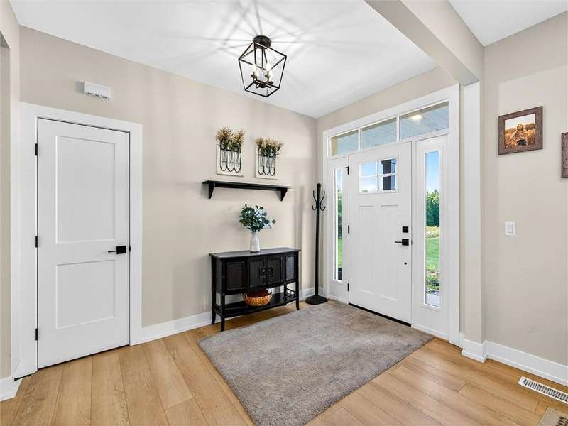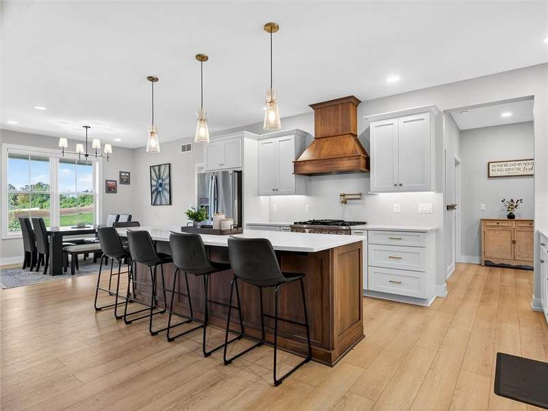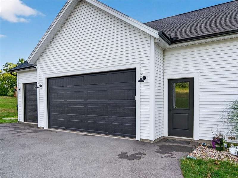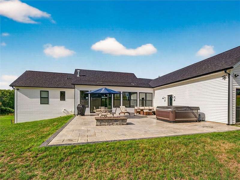 Luxury abounds in this completely custom '22-built Contemporary Ranch home on over two sprawling acres in Rush-Henrietta School District! Inviting, well-landscaped front porch and entry opens to huge Great Room with gas fireplace. Totally custom Chefs Kitchen designed with entertaining in mind offers gorgeous cabinets and solid surface counters, with a gigantic island and a bonus walk-in Butler's Pantry. Relax by the gas fireplace or host your next get-together in the light and bright morning room complete with sliding glass door to the private stamped concrete patio complete with custom built-in fire pit. Enjoy extra privacy in the ample Primary Suite, complete with walk-in closet and custom tiled bath, located conveniently close to 1st floor laundry room. Partially finished 15-course basement offers additional 576 sq ft of living space and tons of storage. Top of the line Anderson windows and mechanicals throughout. Other upgrades include remote-controlled custom window blinds throughout the main floor, ceiling/wall speakers throughout, bathroom heater fans, Culligan whole-home water softener & filter, and Ring doorbell/camera package. Conveniently close to shopping, restaurants, county parks, and expressways.
