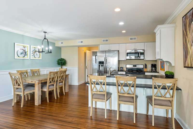 Welcome to The Dunes in highly sought-after Townsend Inlet! Hitting the market for the first time, this second-floor corner unit offers breathtaking OCEAN and BAY views with some of the most spectacular sunsets you'll ever see. Spanning 1,477 square feet, this sun-drenched, south-facing condo features an open floor plan with 3 bedrooms and 3.5 baths, designed for effortless coastal living. The inviting layout seamlessly connects the spacious living area to a private deck, perfect for soaking in the ocean breeze and the calming sound of the waves. Wake up to breathtaking sunrises in the primary suite, which opens directly onto the deck through sliding glass doors. This tranquil retreat includes an oversized walk-in closet and an en-suite bath with a stall shower, blending comfort and convenience. The second bedroom offers its own private bath with a tub/shower combo and a double-door closet, while the third bedroom features an equally spacious en-suite with a stall shower and a generous closet. A full-size washer and dryer are conveniently tucked into the hallway laundry closet. Thoughtful design elements throughout the condo include shiplap accent walls, stylish sconces, overhead puck lighting, and ceiling fans, adding a touch of sophistication to this coastal retreat. Enjoy the ease of maintenance-free beach living with TWO reserved covered parking spots and a private storage box for all your beach gear. The building also offers an elevator, outdoor rinse station, bike rack, and shared storage for larger items. Situated just steps from Shorebreak cafe, Blitz's Market, Anthony's, and Sole, this prime location offers unmatched convenience in Townsend Inlet. Whether you're looking for a personal getaway or a highly desirable investment property, this condo is a fantastic opportunity. Don't miss your chance to own a piece of paradise-call now for more details!