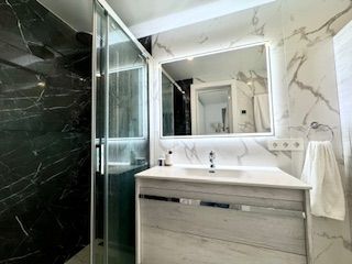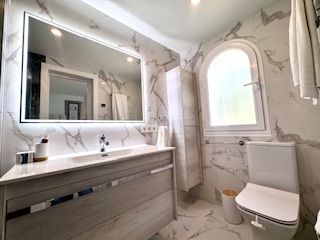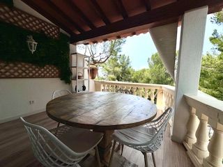 Discover a haven of tranquility in the southeast of Mallorca, within the exclusive residential complex Vistas del Rey. Situated in one of the island’s most coveted areas, this privileged enclave combines serenity with proximity to golf courses, paradisiacal beaches, and luxury marinas. Just a 10-minute walk away, the charming sandy beach of Costa de la Calma invites you to enjoy unforgettable moments by the sea.Completely renovated in 2022 with high-quality materials, this elegant apartment welcomes you with a spacious and bright living-dining room, connected to a modern open-plan kitchen—perfect for sharing and enjoying. The partially covered terrace offers pleasant views of green areas and is complemented by a generous 35 m² patio, ideal for relaxing outdoors.The apartment features two double bedrooms, one with an en-suite bathroom, and a second full bathroom for added comfort. On cooler evenings, the living room fireplace creates a warm and cozy atmosphere. A private parking spa