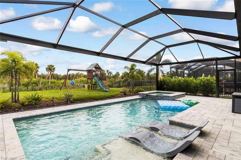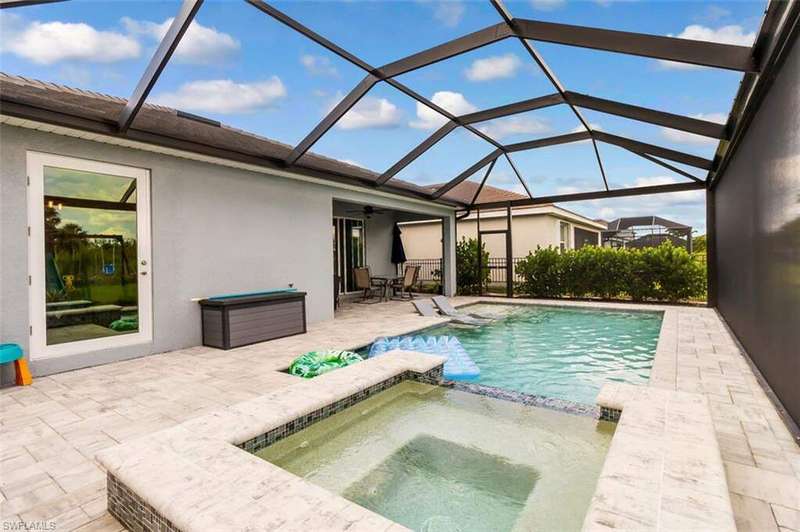 Looking for 2020's Rates? Welcome Home to Mirada, a solar-powered community near Fort Myers Beach. Rare chance to assume a $330K mortgage at just 2.675%. Get ready to fall in love with this gorgeous 4-bedroom, 3-bathroom pool home that's got everything you've been looking for-and more! Step into your own private paradise with a custom pool and spa, perfect for lazy weekends or entertaining friends. The master suite even has its own door to the pool and spa-midnight dip, anyone? Inside, you'll find an open, airy layout with sleek tile flooring and elegant granite countertops. The bedrooms feature warm, wood-look luxury vinyl flooring that adds a cozy, modern touch. The energy-efficient solar power system helps save you money on electric! The fenced-in backyard is great for pets or kids to play safely, and the attached 2-car garage gives you plenty of space for storage and security. And let's talk about the location-this gem backs up to a peaceful preserve, giving you beautiful nature views with no rear neighbors. Don't miss out on your chance to live in one of SW Florida's most sought-after neighborhoods!