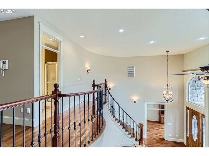 Owner will Carry Contract! You will love this well taken care of one owner home with beautiful views! 2 Primary suites! 5 bedrooms & 4 full bathrooms! The first primary suite is on the main floor with hardwood floors, high coffered ceilings, balcony, Jetted tub, tile walk-in shower, double sinks & huge walk-in closet! the 2nd primary suite has a private bath, walk-in closet and balcony with a view! Breathtaking entry and 18x20 living room with 2 story high ceilings off the kitchen with just refinished hardwood floors and through-out the home! Gas fireplace with nice built-ins and French doors leading to the balcony with a view! Large gourmet island bar kitchen with lots of hard surface counters and tile floors, stainless steel appliances, and large nook area with slider leading to the patio and level fenced back yard. Formal dining room has hardwood floors and coffered ceilings. A 2nd bedroom is also on the main level with walk-in closet. Grand office with built-ins, hardwood floors and high ceilings! The elegant staircase has hardwoods and modern railing open to the living room with hardwood floors. Central air, Central Vacuum. New roof in 2022! Long driveway and oversize 3 car garage with floor coating! Easy access to shopping, restaurants, coffee shops and more. Highly rated Schools.