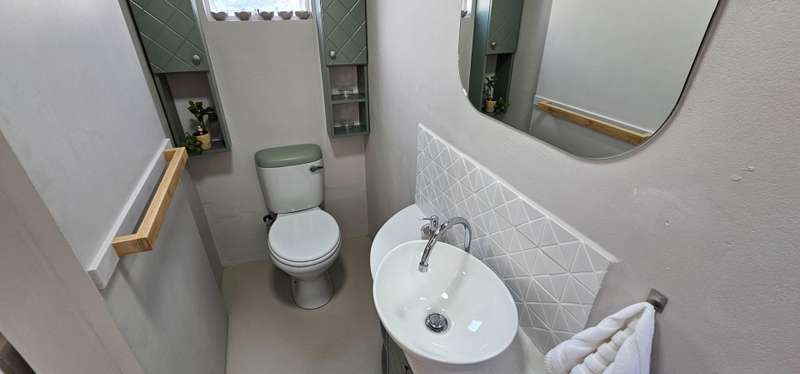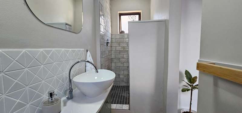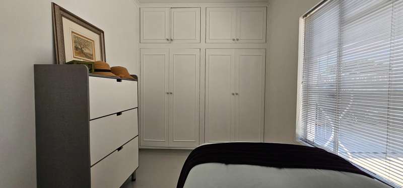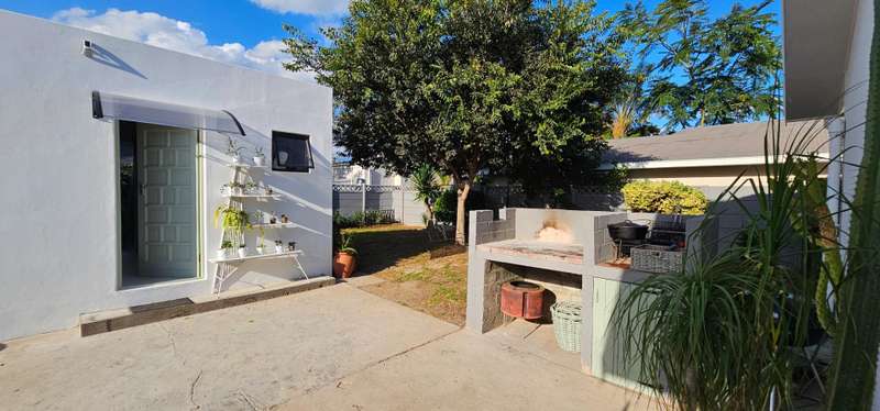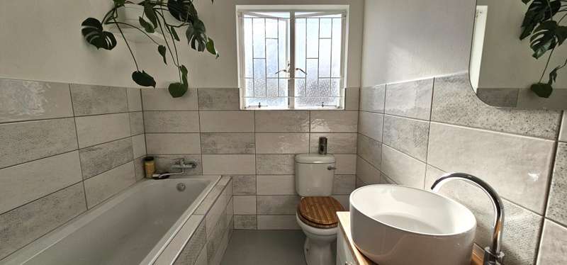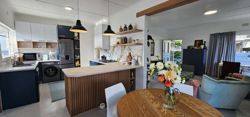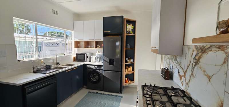 This recently renovated property showcases impeccable attention to detail and quality finishes throughout. Large windows flood the living area with natural light, creating a bright and inviting atmosphere. The semi-open plan layout seamlessly connects the lounge and dining areas to the newly fitted kitchen, which features stylish Hisense appliances, including a fridge/freezer, dishwasher, and washing machine. A gas hob with an electric oven adds to the kitchen?ÇÖs modern convenience. The home offers three well-sized bedrooms, all with built-in cupboards, and is serviced by a contemporary full bathroom and a separate guest toilet. An added bonus is the freestanding outbuilding, which includes a bedroom, bathroom, and a compact semi-kitchen nook?Çöideal for guests or an office space. Enjoy outdoor entertaining under the shade of a large tree beside the braai, while listening to the calming sounds of a small pond and the surrounding birdlife. The property is securely fenced with access via an automated gate. Parking is available in a lock-up garage, with additional space for vehicles in front. Don?ÇÖt miss this opportunity to own a move-in-ready home with modern comforts and a tranquil outdoor setting!