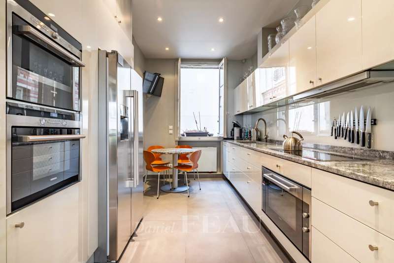 Located on the 5th floor of a beautiful pierre de taille building dating from 1910, with caretaker and elevator, this elegant 147.16 m² apartment combines classic charm with contemporary features. It comprises an elegant entrance hall, a spacious and light-filled reception room, a modern eat-in kitchen, as well as three en-suite bedrooms and a laundry room. Fully renovated with high-quality materials, the property is in excellent condition and benefits from full air conditioning. A cellar completes this exceptional property, ideally located just 100 meters from the Champ de Mars and Rue Saint-Dominique, in the heart of one of the most sought-after areas of the 7th arrondissement.