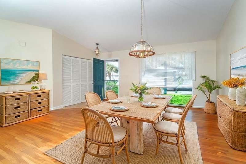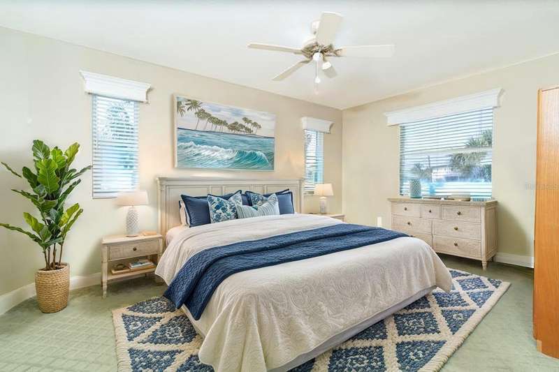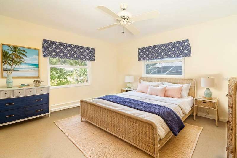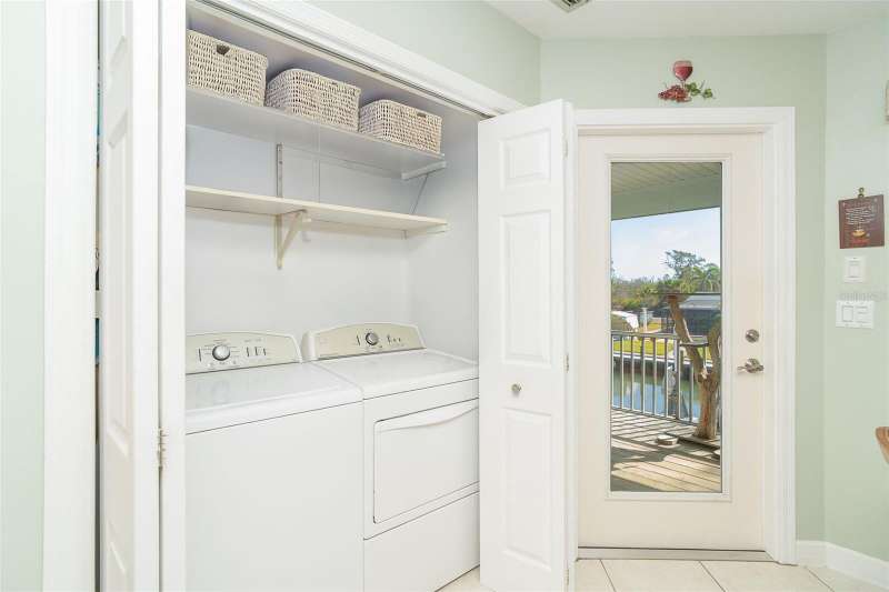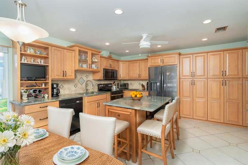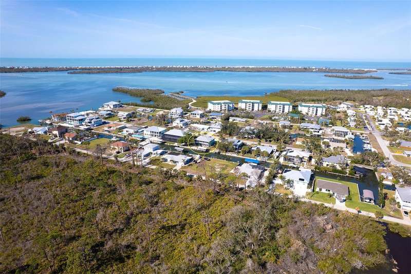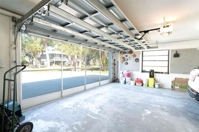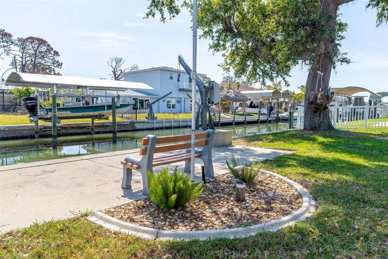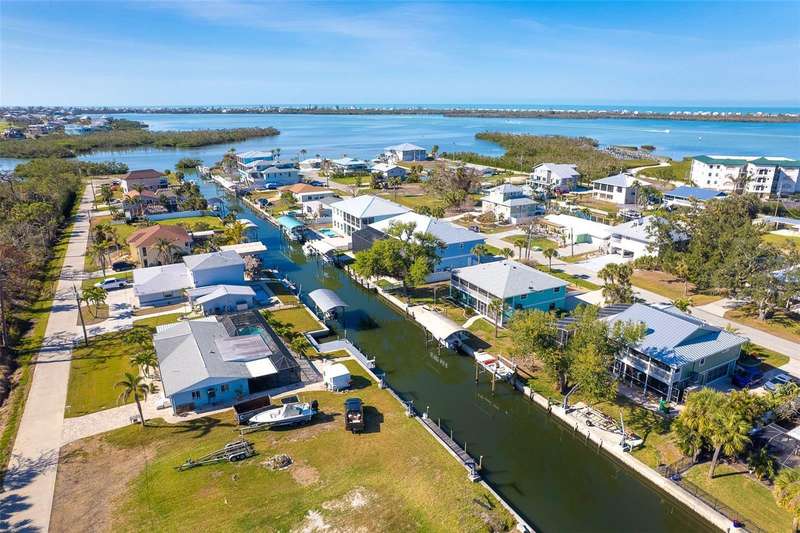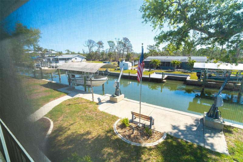 One or more photo(s) has been virtually staged. Waterfront Boatable Retreat with Deep Water Access & Stunning Views! Discover the ultimate coastal lifestyle with this elevated 3-bedroom, 2-bathroom home, perfectly situated on an oversized lot with 100 feet of water frontage. Boating enthusiasts will appreciate the sailboat-accessible deep water, a covered boat lift, a concrete seawall, and a dock with an extended concrete entertainment area—ideal for soaking up the Florida sunshine or hosting waterfront gatherings. Just minutes from the Intracoastal Waterway and the Gulf of Mexico, this property offers unparalleled convenience for those who love to explore by boat. Designed for peace of mind, this elevated home remained high and dry during storm season, with the first floor dedicated to a spacious garage and workshop area. Upstairs, the wraparound porch provides breathtaking sunrise and sunset views while offering a perfect spot to relax and enjoy the serene surroundings. Inside, the open and airy split floor plan welcomes you with a coastal-inspired ambiance and stunning water views from the spacious and open dining and great room area, where large sliding glass doors seamlessly blend indoor and outdoor living. The fully updated kitchen is a chef’s delight, featuring granite countertops, stainless steel appliances, elegant glass-front cabinets, and ample storage with three pantries. A built-in desk with water views and a door leading to the lanai adds both function and charm. The primary suite is a tranquil retreat with double built-in closets, an ensuite bath with granite countertops, a walk-in shower, and a linen closet for added convenience. The guest bedrooms are equally impressive—one featuring a Murphy bed and sliding glass doors to the lanai, allowing for flexible use as a bedroom or home office, while the second oversized guest room includes a built-in closet and shares a guest bath with a tub/shower combo, granite countertops, and a linen closet. Enjoy dual screened-in lanais, with one upstairs and another on the lower level, providing multiple spaces to savor the waterfront views. Additional highlights include a 2023 roof, 2023 A/C unit, 2024 hot water heater, Central Vacuum system, and 2024 refrigerator and microwave. The elevated A/C system is positioned at the top floor level for extra protection and peace of mind. Beautifully landscaped grounds and a screened garage add to the home’s appeal. This exceptional property offers a rare opportunity to own a storm-resilient waterfront home that combines luxury, functionality, and breathtaking views. Schedule your private tour today and make this waterfront oasis your own!