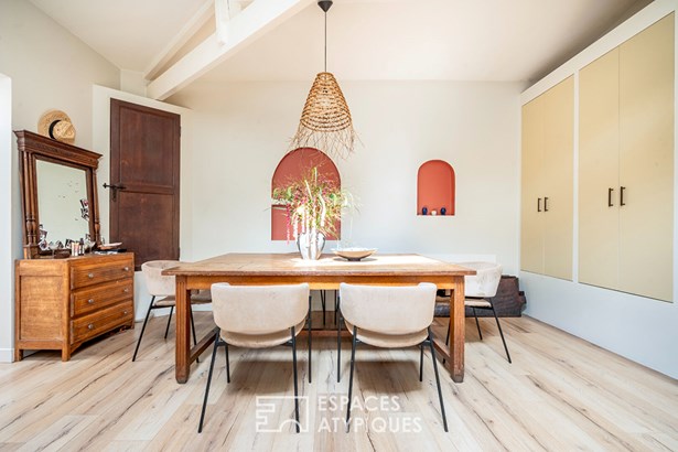 The entrance on the ground floor, accessed from the courtyard, leads to two distinct spaces:
