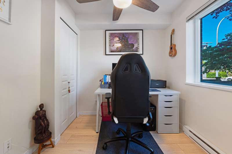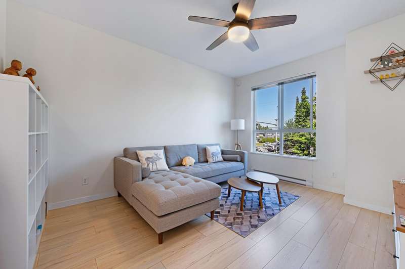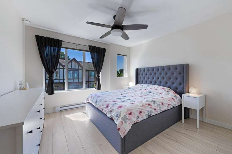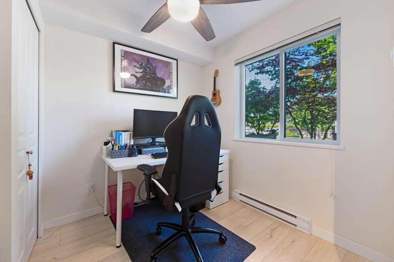 Welcome to Wishing Tree by Polygon, a perfect home for families in central Richmond. This inviting 3-bed, 2-bath townhouse features 9' ceilings, new laminate flooring, and ceiling fans for comfort and fresh air all year. The modern kitchen with granite counters and stainless steel appliances makes family meals a joy. Upstairs are two spacious bedrooms and a full bath, plus a versatile ground-floor bedroom ideal for guests or a home office. Enjoy a fenced yard, a single garage with extra storage, and a second parking spot. The community offers a clubhouse, gym, lounge, and playground—just steps from great schools, parks, shops, and transit.