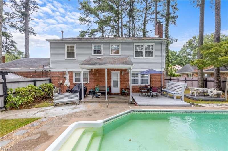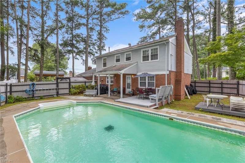 Welcome to 5841 Hartwick Drive- a spacious 4 bedroom/2.5 baths, situated on a cul de sac in the sought-after neighborhood of Azalea Lakes; enjoy views of the Lake Whitehurst or a dip in the private inground pool; updated eat in kitchen with granite countertops and stainless steel appliances; formal living room and dining room offer plenty of space for gatherings; bonus office/den with fireplace; large converted garage for additional space; generous patio for entertaining with fenced in yard; conveniently located just minutes away for the Norfolk Airport, Botanical Gardens, shopping and the military bases- and no HOA fees!