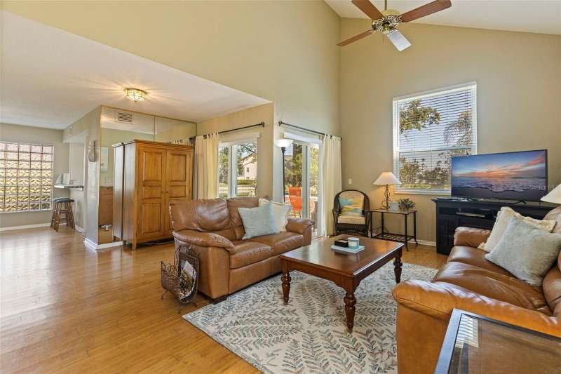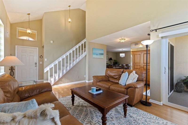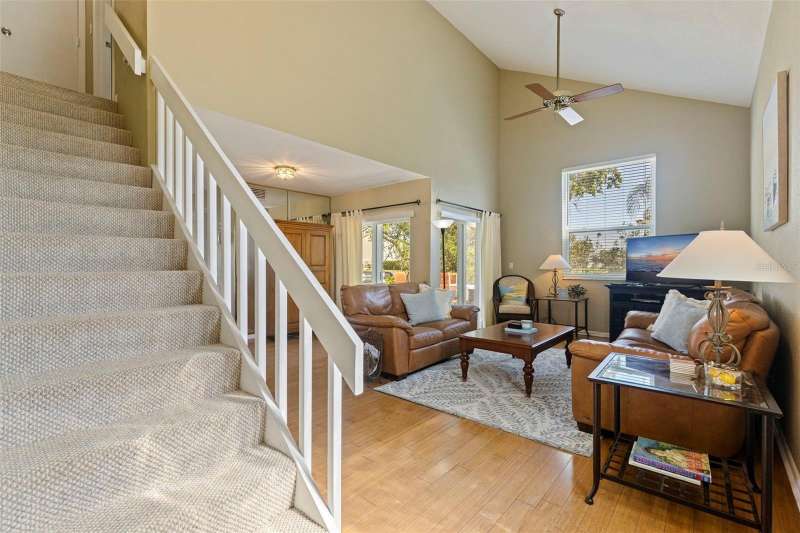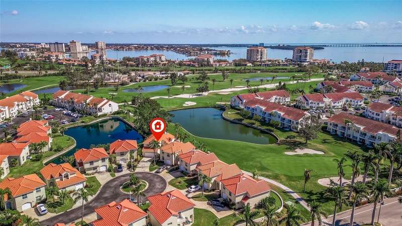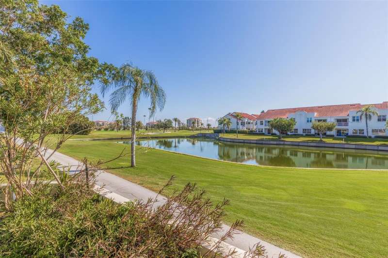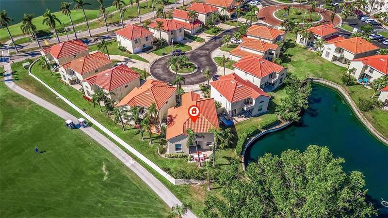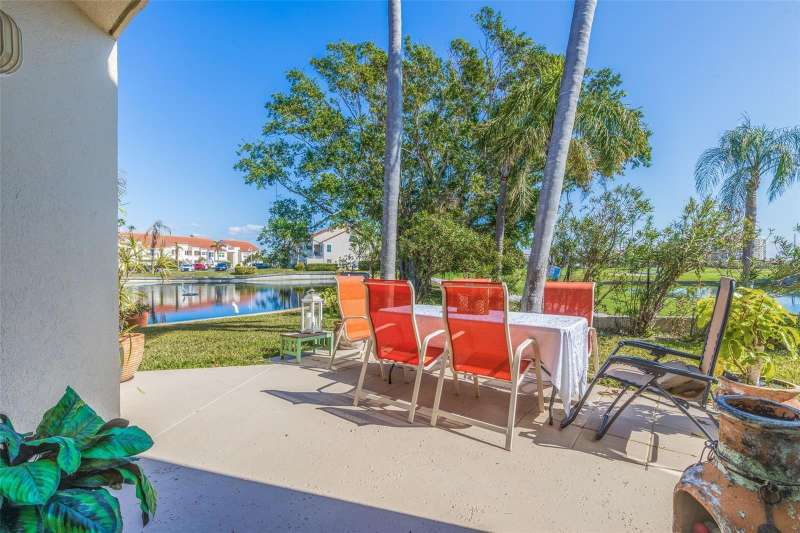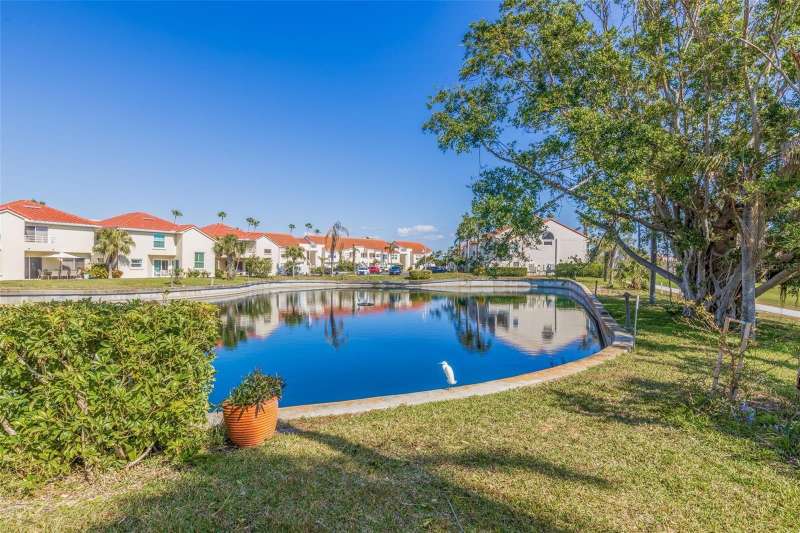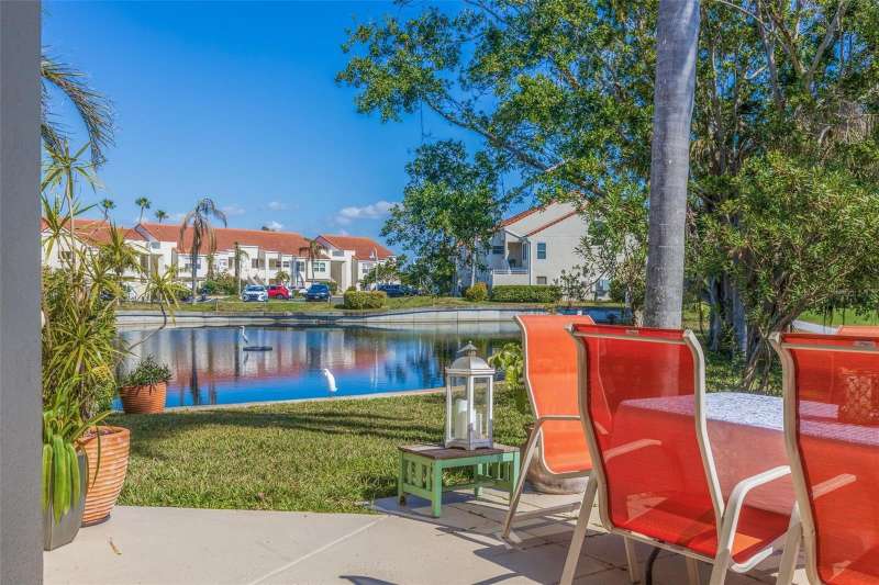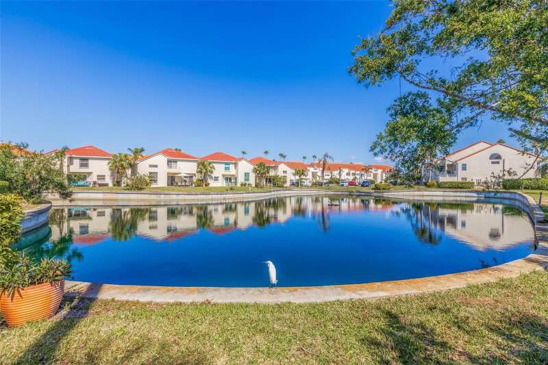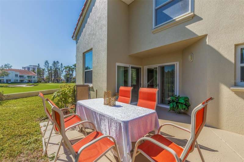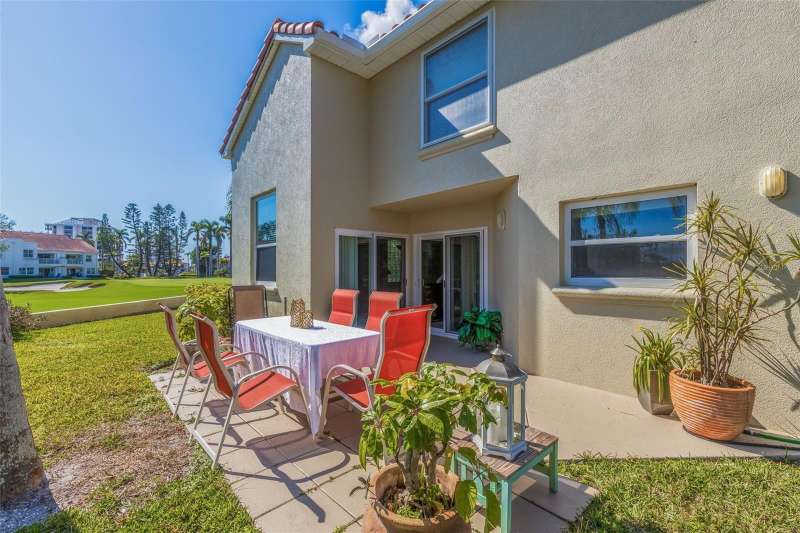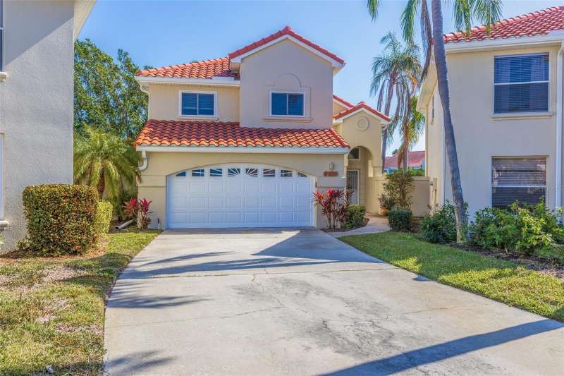 Welcome to Mirada, a rarely available, turn-key move in ready villa with furnishings optional in the heart of Isla Del Sol community & golf course! This standalone 3 bedroom, 2 & 1/2 bathroom residence offers the largest available layout with the most interior with a spacious attached two-car garage, focusing on privacy and space of a home with the ease of maintenance-free living. Whether you're looking for full time residency, second home, or investment property- enjoy total peace of mind. Everything is taken care of so you can fully embrace the true Florida lifestyle. As you enter, you'll be greeted by a bright and open floor plan with soaring ceilings in the spacious living room with updated windows providing an abundance of natural light. Convenient double sliding door with access to the spacious outdoor patio, perfect for entertaining, catching the morning sun, or grilling with a serene water pond and golf course backdrop. The dining room seamlessly connects the living space and kitchen, designed for efficiency, featuring plenty of storage, breakfast bar seating, updated appliances, and more water pond and golf course views. The main level also includes a convenient powder room and direct access to your attached private oversized two-car garage, which includes a mini workshop and storage along with a laundry area with full size washer and dryer. Upstairs, all three bedrooms provide comfort and privacy. The spacious primary suite is a true retreat, offering breathtaking views of the beautifully lit pond along with enchanting bird watching opportunities. It features a large closet and an ensuite bath with double vanities and a soaking tub with shower combination. The two additional bedrooms are perfect for guests or family, featuring ample closet space and large windows that bring in natural light. A second full bathroom features a stand up shower with seating conveniently serving the guest rooms. Tucked away in a quiet cul-de-sac, this home offers extra privacy and plenty of additional parking in the extended driveway. Beyond your front door and just a short walk away you’ll find the resort style heated pool & spa, and clubhouse. Isla Del Sol's lush tropical landscaping and resort-style ambiance of the highly sought after Isla Del Sol Country Club, pickleball, tennis, golf, and a vibrant social scene. Small pets are welcomed in the community. Perfectly situated just a bike ride from world-famous beaches, 10min drive to downtown St. Pete, and 40 mins to Tampa International Airport, and local major sporting venues.