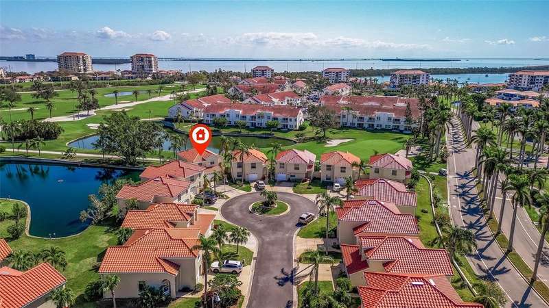 Under contract-accepting backup offers. Welcome to Mirada, a rarely available, turn-key move in ready villa with furnishings optional in the heart of Isla Del Sol community & golf course! This standalone 3 bedroom, 2 & 1/2 bathroom residence offers the largest available layout with the most interior with a spacious attached two-car garage, focusing on privacy and space of a home with the ease of maintenance-free living. Whether you're looking for full time residency, second home, or investment property- enjoy total peace of mind. Everything is taken care of so you can fully embrace the true Florida lifestyle. As you enter, you'll be greeted by a bright and open floor plan with soaring ceilings in the spacious living room with updated windows providing an abundance of natural light. Convenient double sliding door with access to the spacious outdoor patio, perfect for entertaining, catching the morning sun, or grilling with a serene water pond and golf course backdrop. The dining room seamlessly connects the living space and kitchen, designed for efficiency, featuring plenty of storage, breakfast bar seating, updated appliances, and more water pond and golf course views. The main level also includes a convenient powder room and direct access to your attached private oversized two-car garage, which includes a mini workshop and storage along with a laundry area with full size washer and dryer. Upstairs, all three bedrooms provide comfort and privacy. The spacious primary suite is a true retreat, offering breathtaking views of the beautifully lit pond along with enchanting bird watching opportunities. It features a large closet and an ensuite bath with double vanities and a soaking tub with shower combination. The two additional bedrooms are perfect for guests or family, featuring ample closet space and large windows that bring in natural light. A second full bathroom features a stand up shower with seating conveniently serving the guest rooms. Tucked away in a quiet cul-de-sac, this home offers extra privacy and plenty of additional parking in the extended driveway. Beyond your front door and just a short walk away you’ll find the resort style heated pool & spa, and clubhouse. Isla Del Sol's lush tropical landscaping and resort-style ambiance of the highly sought after Isla Del Sol Country Club, pickleball, tennis, golf, and a vibrant social scene. Small pets are welcomed in the community. Perfectly situated just a bike ride from world-famous beaches, 10min drive to downtown St. Pete, and 40 mins to Tampa International Airport, and local major sporting venues.
