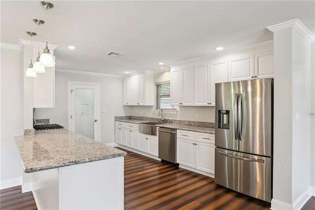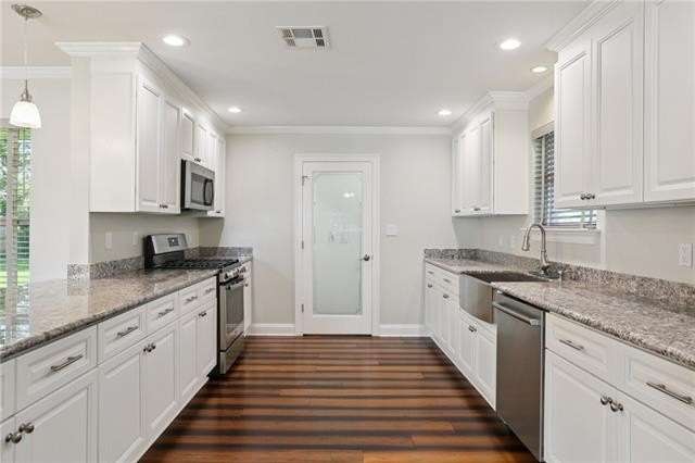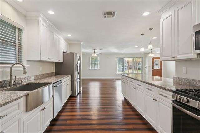 COME SEE this beautifully RENOVATED 3 BDRM/2 BA home in the heart of OLD JEFFERSON, perfectly tucked away on a QUIET DEAD-END STREET! Step inside and be wowed by the OPEN FLOOR PLAN, drenched in NATURAL LIGHT + featuring HIGH-END ENGINEERED BAMBOO FLOORS, recessed lighting, and SOLID CORE DOORS for a polished, modern look. The UPDATED KITCHEN is a chef’s dream with GRANITE countertops, STAINLESS STEEL appliances, soft-close cabinets, and a WALK-IN PANTRY = style + function at its best. Enjoy the peace of mind of ENERGY-EFFICIENT windows, a TANKLESS WATER HEATER, and a WHOLE-HOUSE GENERATOR, while the HUGE OVERSIZED LOT offers endless options for outdoor living, entertaining, or expansion. Location = unbeatable, with quick access to Airline, Earhart, Jefferson Hwy, or River Road (+ you’re in preferred FLOOD ZONE X!). This MOVE-IN READY home truly has it all—space, style, efficiency, and convenience—schedule your showing TODAY before it’s gone!