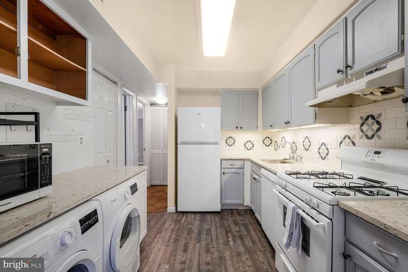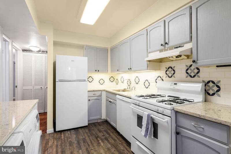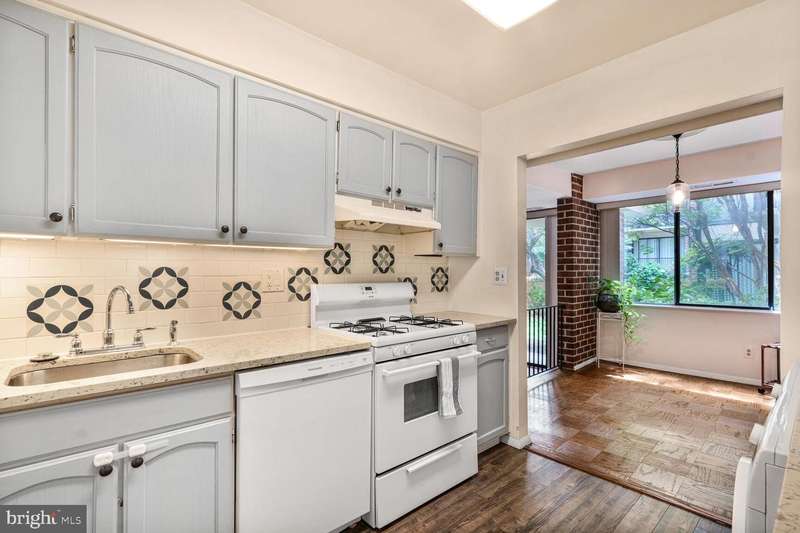 New Price! Check out this spacious, renovated 2 BR, 1.5 BA condo, loaded with upgrades! Rarely available main level location provides a walkout to a private terrace with flower beds and large grassy common grounds. The accessible location of the unit is ideal for those who love the outdoors and pet owners, as the building allows cats and dogs (weight limit) and offers one-level entry/living. The prime location is close to amenities including ample parking, the community pool, tot lots, and dog park. Lovingly updated by its current owners, the attractive unit features an impressive stone wall, washer and dryer in the unit, and a kitchen with extra counter space, newer appliances and flooring. The main bathroom has been nicely renovated. Extra Storage. Fee covers all utilities and amenities. Don't miss this attractively priced unit in great condition - come see it, compare and be amazed!