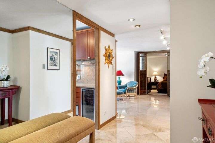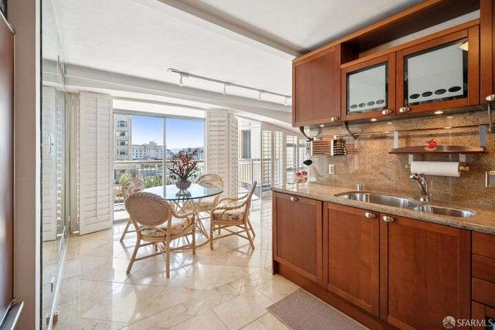 Pacific Heights lifestyle at its finest in Residence #8E at 2200 Pacific Avenue, an iconic full-service building in one of San Francisco's most coveted neighborhoods. This elegant 1-bedroom + den home blends timeless sophistication with modern comfort, featuring marble and wood floors, plantation shutters, and abundant storage. The light-filled living and dining areas flow seamlessly to a private terrace with sweeping southwest views and inviting setting for morning coffee or evening entertaining. The spacious bedroom retreat includes generous closets and an updated en-suite bath. Residents enjoy 24-hour door staff, a panoramic roof deck with heated pool, secure parking, private storage, and included utilities. Just steps from Lafayette Park and the chic shops and cafs along Fillmore Street, this home offers a rare opportunity to experience the elegance, convenience in the heart of Pacific Heights living while offering exceptional value.