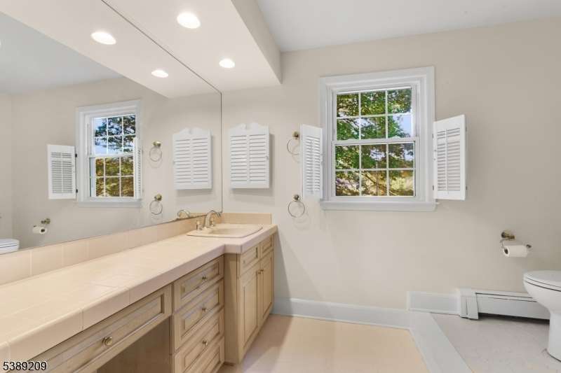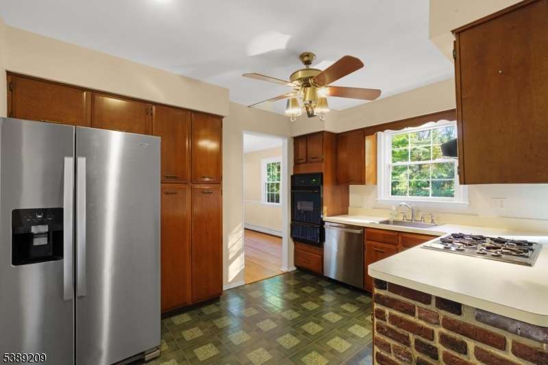 Outstanding Colonial with charming rocking chair front porch set back beautifully on a tree and sidewalk lined street in storybook Mendham Boro- a truly compelling home in one of NJ's most admired communities. 9 rooms including 4 airy bedrooms, 2 full baths, powder room, comfortable formal living room with resplendent picture window, fantastic family room boasts a raised-hearth gas fireplace flanked on each side by built-ins, lovely kitchen has a pocket door entryway, stainless steel appliances, wall oven and four-burner gas cooktop, abundant wood cabinetry, stainless steel sink, and roomy eat-in dining area with radiant bay window, dining room has a sparkling center chandelier, well appointed service area replete with powder room, laundry room with tub sink, and door to the relaxing three-season porch and rear yard, and handy access the the attached garage; second floor includes 4 airy bedrooms with generous closets and bright windows, hall bath with dual sink vanity and tub shower, plus a spacious primary bedroom suite with private sitting area/office, voluminous walk-in closet, and full bath with vanity sink and stall shower. This home offers 2,360 sq ft of commodious living space on two expansive floors, plus hardwood flooring and updated windows, pull down stairs attic access, unfinished basement with storage areas, 2-car attached garage, paved driveway and vinyl siding. Showcase property w 1.19 pancake-flat acres and rear yard that is gardener's delight w flat, cleared play area in rear.