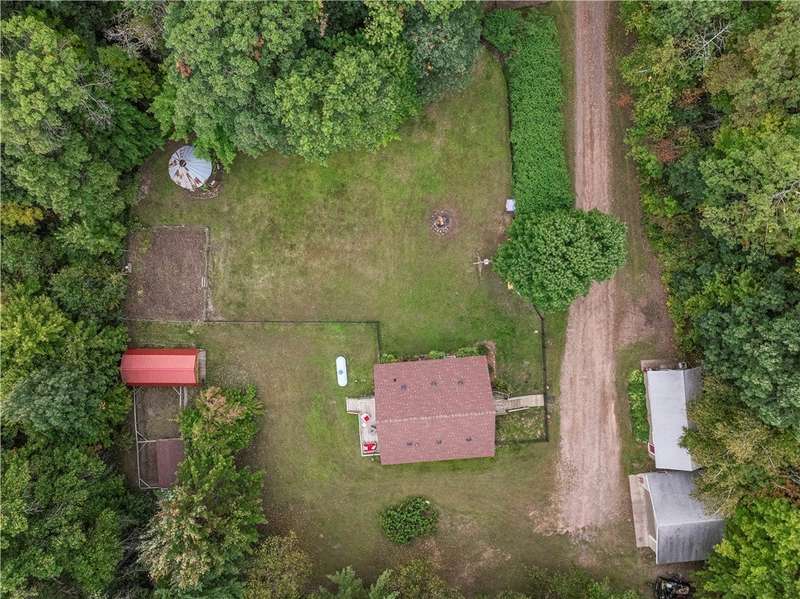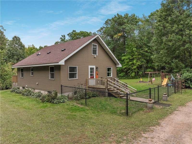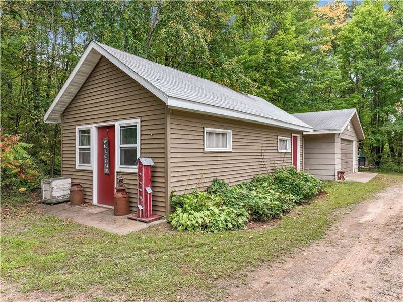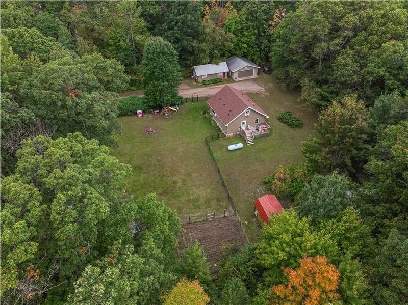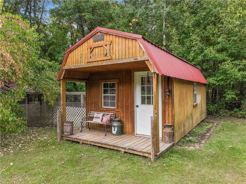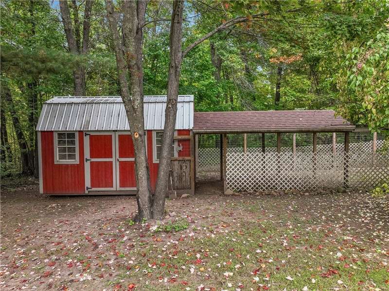 Country home on the outskirts of Spooner, set on 3.5 acres of well-wooded mature trees, with a large yard and a tall, newer chain link fence. You will love the open floor plan, plenty of kitchen counter space, ample room for dining, and large windows in the living room overlooking the spacious yard. This mini farm includes a large, fenced garden, several outbuildings, including a former big chicken coop and a large, caged area for free-range roaming. Call it what you want-Man-Cave, She-shed, or workshop-the 28 x 14, insulated and heated space offers flexibility for whatever you need. Newer roof, vinyl siding, and solid poured concrete foundation make this charming place a solid purchase. Long private driveway and large fenced area ensure a safe place for kids and animals! The framed silo provides a charming backdrop for your private wooded view. Quick access to Hwy 53 is ideal for those commuting to surrounding communities. Enjoy life north of the Tension Zone on Little Valley Road.