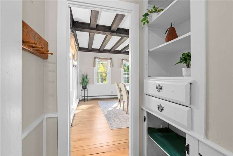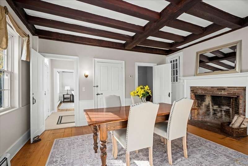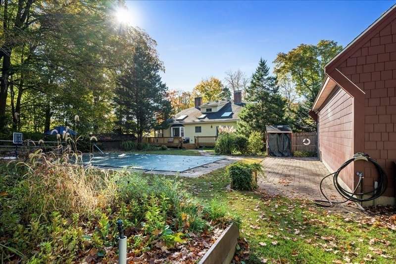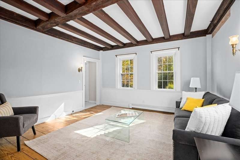 Introducing the Charles Burnett House. This historic home built in 1790 is looking for a lucky new steward for the first time in 50 years. Turn key move in ready. Truly charming with original details, including freshly finished wide pine floors, wood beams and original stenciling mixed w/ modern upgrades-updated electric, newer oil tank, fresh paint, new carpet and a granite/stainless kitchen. First floor primary with private bath leads to new deck overlooking gorgeous grounds featuring updated inground pool and 200k+ incredible two-story garage with second floor bonus room great for hobbies or home office! Wonderful side entry screen porch is the perfect spot to relax. Manicured 1 acre lot with stunning perennials. Convenient location close to commuter rail and walking distance to Finn. Once in lifetime opportunity!