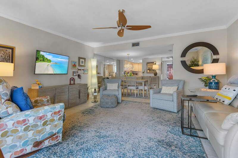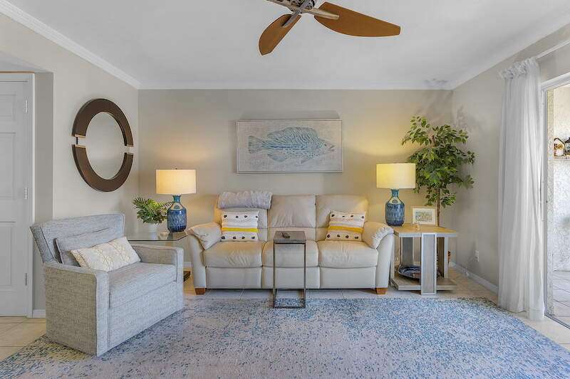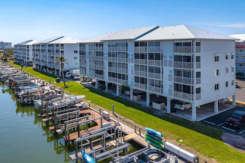 2 story 2 bed/2.5 bath Royal Pelican townhome. Turnkey! 2 master en-suites and 2 lanais plus a guest 1/2 bath. Updated Kitchen new stainless fridge. Tile flooring throughout the main floor. This home is light a bright and offers great canal water views and eastern exposure for late afternoon sun protection. The laundry room is conveniently located in the lanai off the main bedroom. Enjoy peace of mind with a new impact resistant window in bedroom. Added benefits include: New plumbing throughout the entire building, new metal roof, secure lobby. New paint, landscaping and pool expansion in process. Lanai's are in the process of being updated with new paint, railings and screens. Royal Pelican offers 2 pools and 2 shuffle boards, BBQ Grills, Picnic Tables, clubhouse with large recreation room, restrooms and kitchen. EBIA Amenities include: Pickle ball, Tennis, Bocce Ball, Deeded Beach Access, Beach Parking, Putting Greens, Driving Cage, Chipping Greens, Walking Paths and Fishing Pier. Boat slips available for purchase. Call today to learn more about this opportunity.