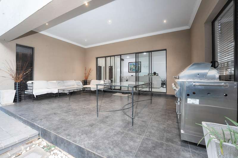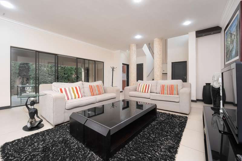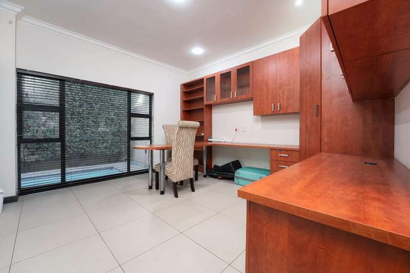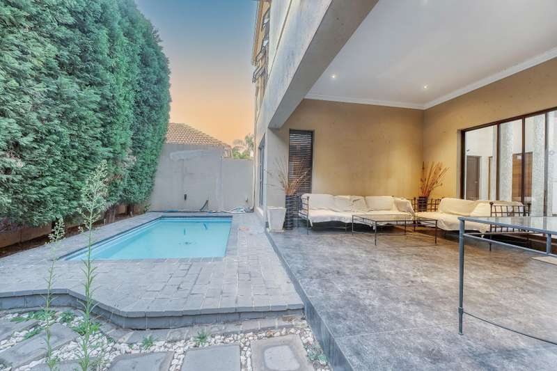 Cezanne, Morningside ?Çô Corner Cluster with Style and Substance Set in one of Morningside?ÇÖs most desirable complexes of only 16 homes, this corner cluster offers the perfect balance of privacy, security and community. Wide driveways, generous visitor parking and 24-hour manned security make everyday living seamless, while the intimate scale of the estate creates an exclusive, family-friendly atmosphere. The entrance opens into a light-filled interior with marble flooring, immediately setting the tone for modern, classic, contemporary living. The open plan lounge, with its elegant fireplace, flows effortlessly onto the entertainment deck, garden and year-round swimming pool?Ǫ the perfect setting for relaxed weekends or stylish gatherings. The sleek designer kitchen is a statement of its own, fitted with top-of-the-line Miele appliances including a double oven, microwave, fridge, freezer and coffee machine. Every detail speaks to convenience and sophistication, making it a true dream kitchen for both family and entertaining. Also downstairs is a versatile, beautifully designed room with built-in shelving and desks. It works equally well as a spacious office, additional bedroom or private guest suite, complete with a bathroom alongside. Upstairs, three expansive en-suite bedrooms each enjoy their own balcony, offering light, air and tranquility. Off the landing, a large terrace invites children to roller skate and play, or doubles as a generous outdoor entertainment space. Plans have already been drawn to convert this area into full staff accommodation if desired. Pet-friendly and designed for modern lifestyles, this home blends elegance, functionality and security. With two garages, ample visitor parking, exceptional finishes and a prime position in one of Morningside?ÇÖs finest complexes, it is the definition of easy, stylish living.