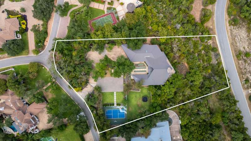 Situated in Rob Roy, one of Westlake's most coveted gated communities, 10 Hedge Lane boasts exceptional views, expansive terraces, and a 3-car garage. The single-level residence features 4 bedrooms and 4.5 bathrooms on a premier lot with a lush green yard and sports court. Glide over floating stones as you approach the striking glass doors that welcome you inside the residence. The interiors instantly impress with a vaulted ceiling, fireplace, and incredible panoramic views of the Hill Country and the Austin skyline in the distance. Natural light pours into the living room through abundant windows and sliding glass doors to the terrace. The living room flows into the immaculate gourmet kitchen with ample cabinetry, stainless steel appliances, and a wet bar. Escape to the privacy of the primary suite that features French doors to the terrace and beautiful vistas. The spacious primary bathroom offers dual sinks, a soaking tub, a glass-enclosed shower, a vanity room, and a massive walk-in closet. 3 additional guest suites, each with en-suite baths, provide comfort and privacy for family and visitors. A powder room, mudroom, and laundry room complete the home. Living in Rob Roy offers the perfect blend of privacy, prestige, and convenience in one of Austin's most sought-after gated communities. Nestled in the scenic hills of West Austin, residents enjoy expansive homesites with breathtaking Hill Country views, all while being just minutes from downtown, Lake Austin, and top-rated Eanes ISD schools. With 24-hour security, a tranquil atmosphere, and proximity to premier shopping, dining, and entertainment at Barton Creek and Westlake, Rob Roy provides a rare opportunity to enjoy both serene living and the vibrancy of Austin life. Tax and assessed values are estimates for illustration purposes only. All figures should be independently verified. Some images are virtually staged for visualization and may not reflect the actual appearance or condition of the property.