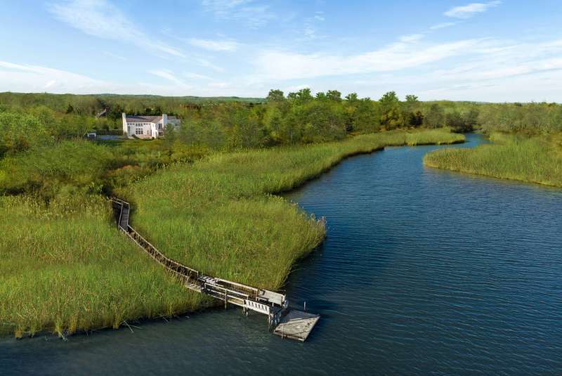 Welcome to 53 Bay Ave, Water Mill South - an exceptional, newly built masterpiece, that exudes elegance and custom sophistication. Designed by the renowned architect James D'Auria and crafted by the esteemed Wright & Co., this bright and stunning modern farmhouse is a true work of art featuring approximately 5,039 sf of living space with big windows inundating the home with natural light, blending the indoors with landscaping and creating a warm atmosphere. Nestled south of the highway on a tranquil cul-de-sac street, this stunning 4-bedroom, 3 1/2-bathroom home offers the perfect blend of modern style and timeless charm. Upon entering the spacious foyer, you are captivated and greeted by a dramatic chic living room featuring soaring 25-foot ceilings and a beautiful gas fireplace. Surrounded by floor-to-ceiling windows the space is bathed in natural light. Features include beautiful wood floors throughout, creating a warm and cohesive aesthetic. The chef's kitchen is a true focal point, featuring Caesarstone countertops, an oversized island, and top-of-the-line appliances with an open-concept design seamlessly flowing into the dining area, which is highlighted by a charming wood-burning fireplace - perfect for cozy gatherings. French doors open to a covered outdoor patio, providing a seamless connection between indoor and outdoor living perfect for alfresco dining or relaxation. The generously sized den, with its stunning 15-foot ceilings, is graced by beautiful antique doors from the 1600s, sourced from India, adding a sense of history and character to this contemporary home. On the second floor, enjoy breathtaking water views of Hayground Cove and Mecox Bay. The spacious primary bedroom includes a private balcony overlooking the bay, a gas fireplace, a private deck with an outdoor shower, double walk-in-closets and ample space for relaxation. Additionally, this level offers two guest rooms, two full bathrooms, and a versatile TV den that was originally designed as a fourth bedroom. The property is thoughtfully equipped with modern amenities, including a one-car garage, central air conditioning, a backup generator, a geothermal system, a Sonos audio system, and a security system for peace of mind. Enjoy ultimate relaxation with beautiful grounds meticulously landscaped with mature trees, perennial flower beds, and a gorgeous rose garden. A heated pool and a vibrant pergola offer the perfect spot to unwind in this peaceful oasis. For nature enthusiasts, wander through the beautiful backyard, which features a nature trail that invites you through nature's splendor offering a peaceful escape right at your doorstep. For boating and outdoor lovers, the private boat dock is reached by a path, adorned by native vegetation through 100-year-old blueberry trees, which meanders toward the private dock overlooking Hayground Cove and Mecox Bay, offering unparalleled access to water activities. An added bonus, a 14+/- foot Boston Whaler is included, making it easy to set off for a day and to explore the cove, visiting nearby beaches, or simply enjoying the beauty of nature. This exceptional property provides room to expand, offering endless potential. 53 Bay Ave, Water Mill presents a rare opportunity to own a one-of-a-kind Hamptons retreat combining nature, waterfront living, and tranquility. Perfect for those seeking the ultimate escape, this home is truly an idyllic haven for both relaxation and entertainment. Listing ID: 919509